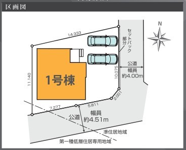 | 用途地域 | 準工業地域/第一種低層住居専用地域 | 建ぺい率 | 60%/40% |