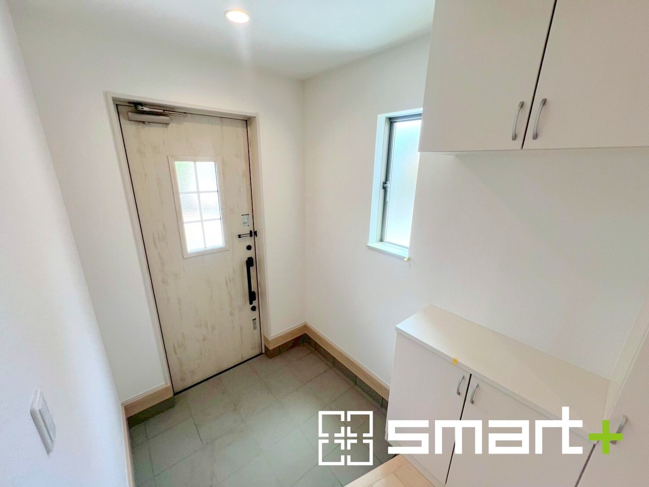 ~穏やかな陽が入る玄関~ ・窓に加えて玄関ドアのガラス部分からも穏やかな陽が入り、明るい玄関になります。 ・備え付けのシューズボックスはたっぷりしまえて玄関がスッキリ片付きますね。