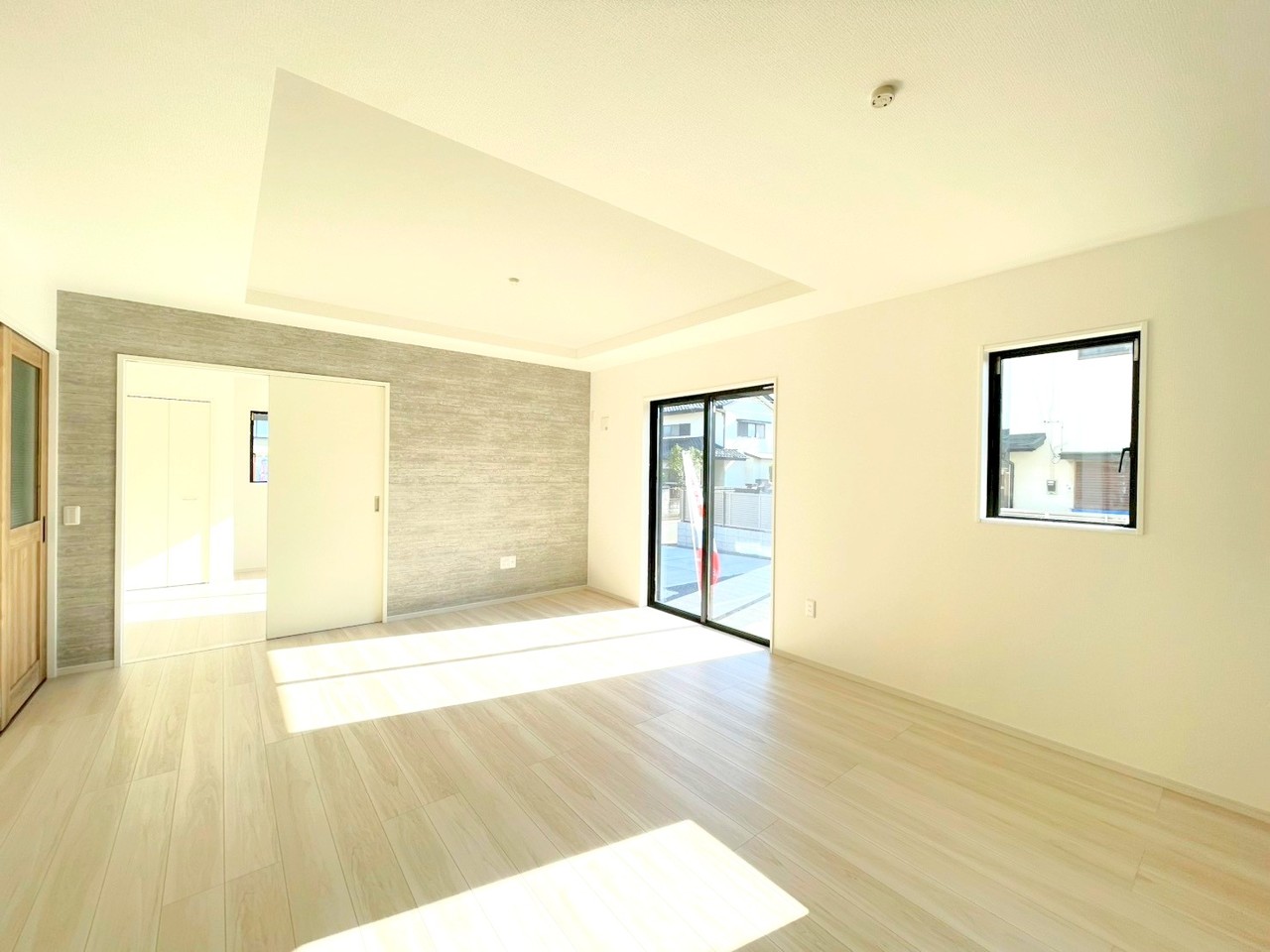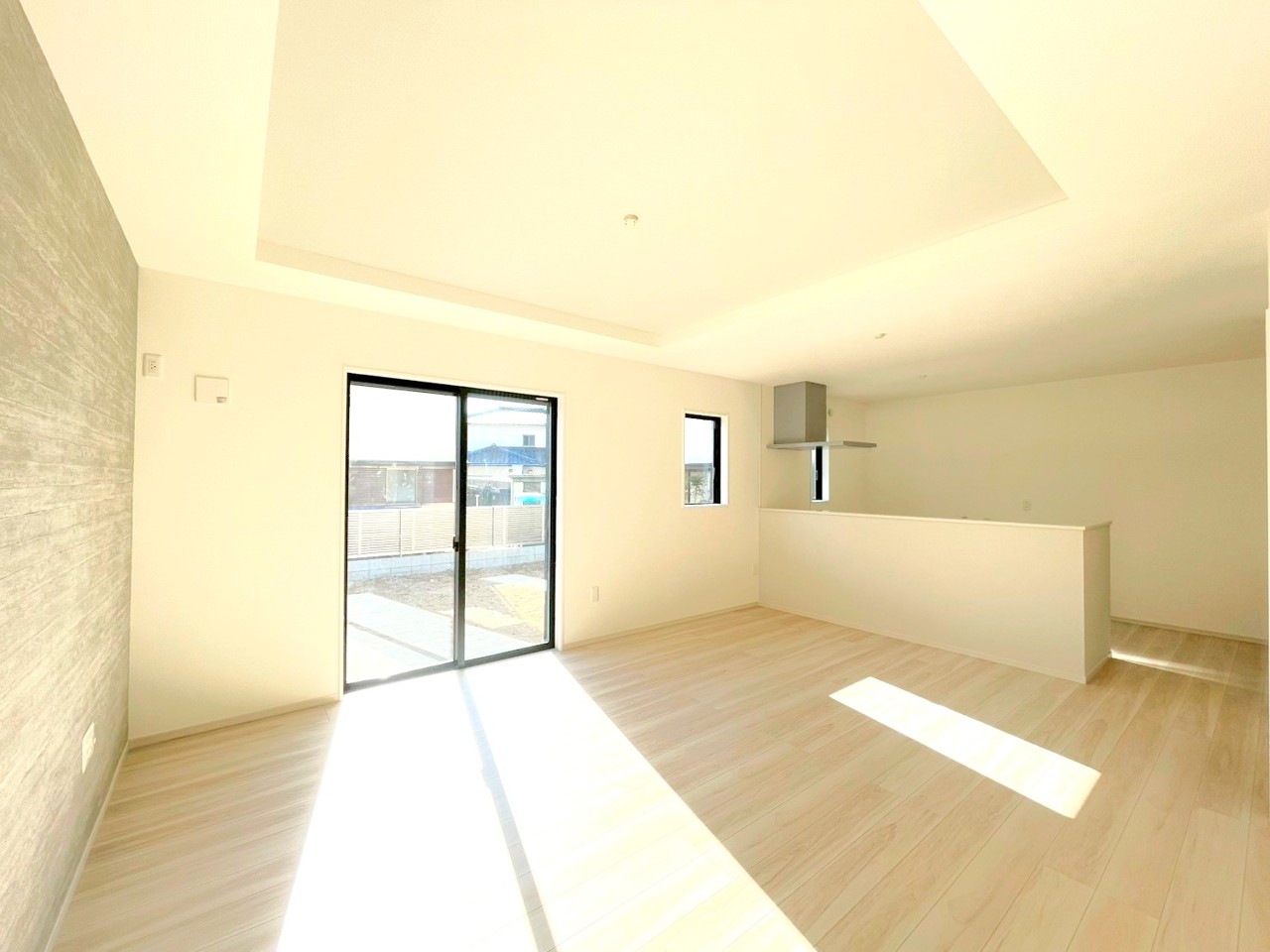 ~折り上げ天井のあるLDK~ ・一部天井を高くする折り上げ天井を配する事で縦への空間が生まれ、開放感のある広々とした仕様に。 ・ぜひ現地でその魅力をご体感くださいませ。