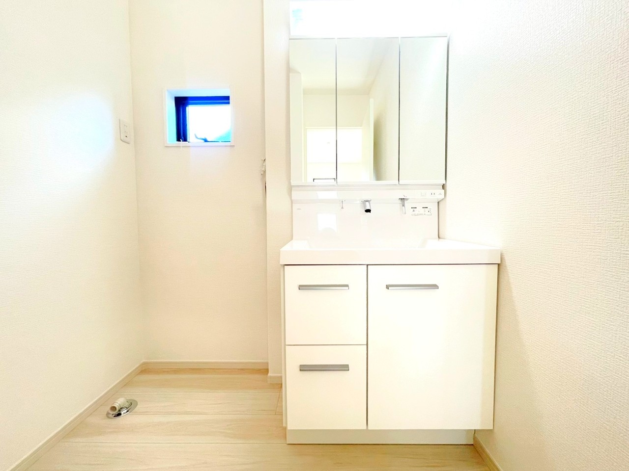 ~人気の三面鏡を採用~ ・洗面台は三面鏡仕様なので鏡の角度を変える事で頭の後ろの方までご確認可能です。 ・鏡の裏が収納になっておりますので、洗面台周りもスッキリと片付きます。