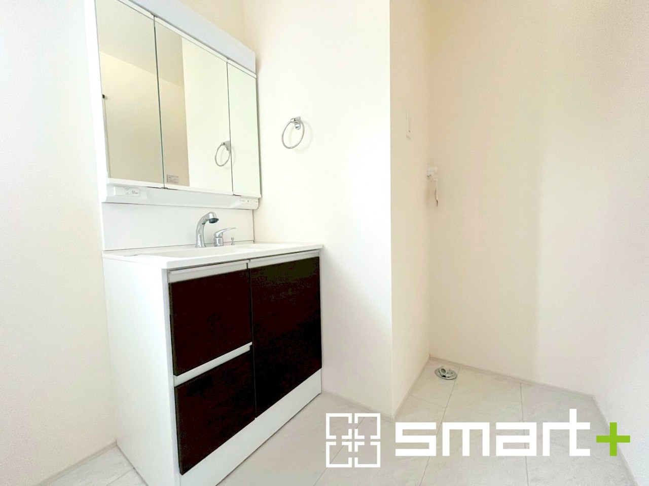 ~人気の三面鏡を採用~ ・洗面台は三面鏡仕様なので鏡の角度を変える事で頭の後ろの方までご確認可能です。 ・鏡の裏が収納になっておりますので、洗面台周りもスッキリと片付きます。