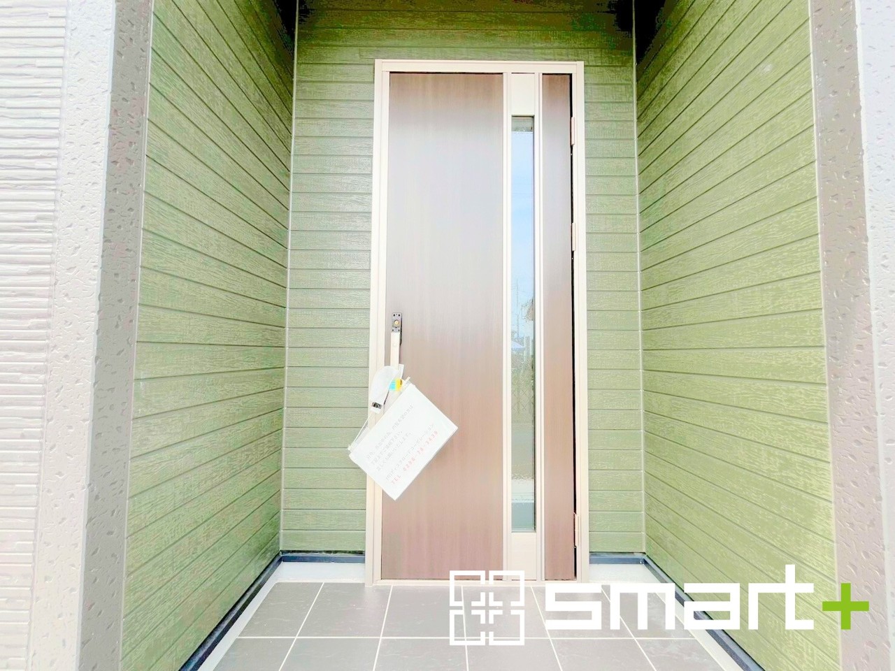 ~穏やかな陽が入る玄関~ ・玄関ドアにガラス部分を設ける事で穏やかな陽の入る玄関になります。 ・玄関ドアの上にはもちろん軒がございますので、雨の日でも濡れずに鍵の開閉が可能です。