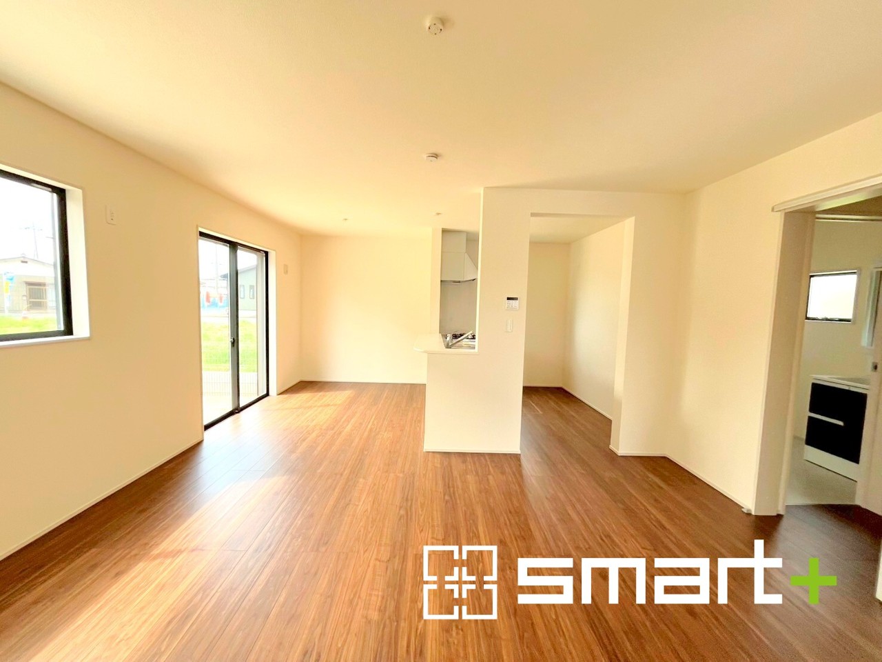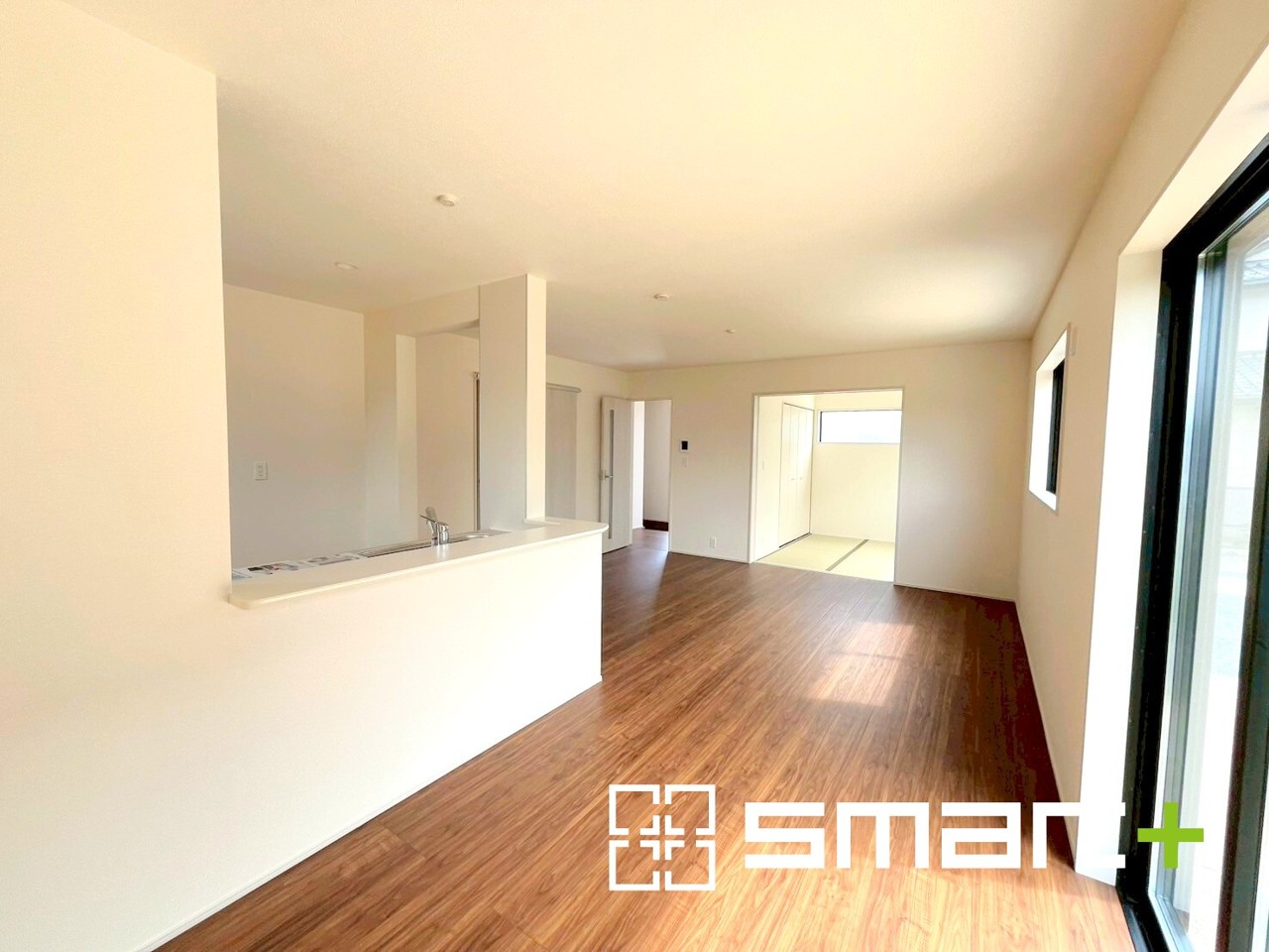 4号棟 ~穏やかな陽の入るLDK~ ・大きな窓のあるLDKは陽当りも良好で明るい空間となっております。 ・ご家族団らんなど過ごす時間の多いLDKが明るいのは嬉しいポイントですね。