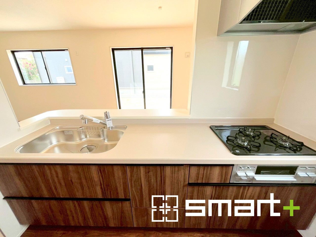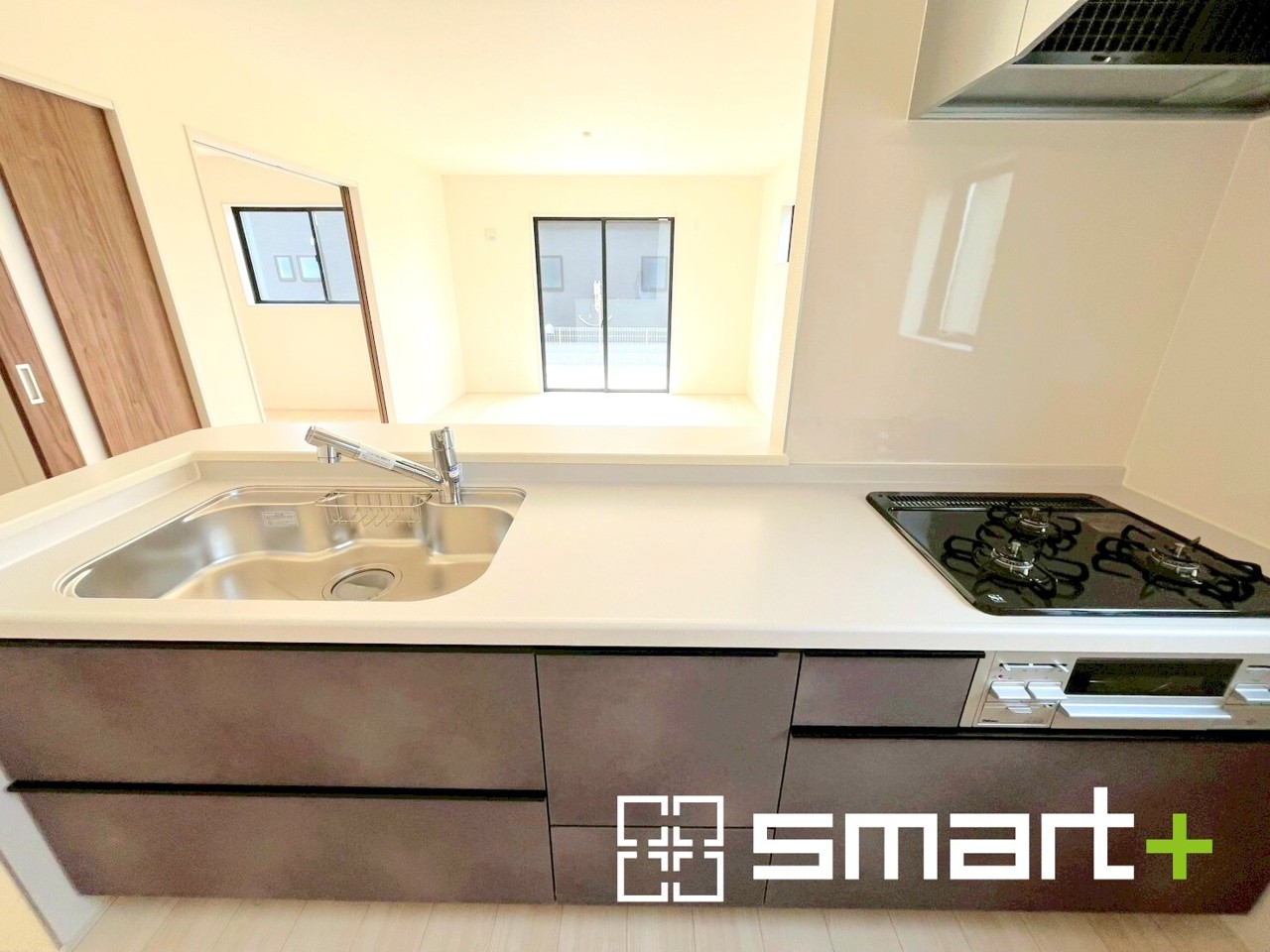 4号棟 ~人気のカウンターキッチン~ ・キッチンには余計な柱が無いので、リビングが見渡せ開放感のある造りとなっております。 ・蛇口には浄水器が内蔵されるなど機能面でも優れたキッチンです。