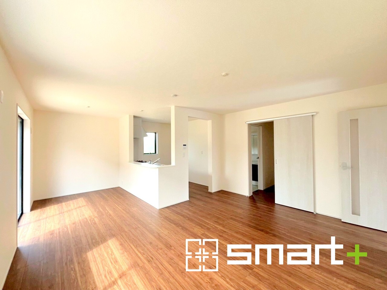 4号棟 ~家族団らんにピッタリの広々リビング~ ・穏やかな陽だまりに包まれる居心地の良いLDKは、ご家族が集まる憩いのスペースに。 ・隣接の洋室を続き間として利用すれば20帖超の広々空間になります。
