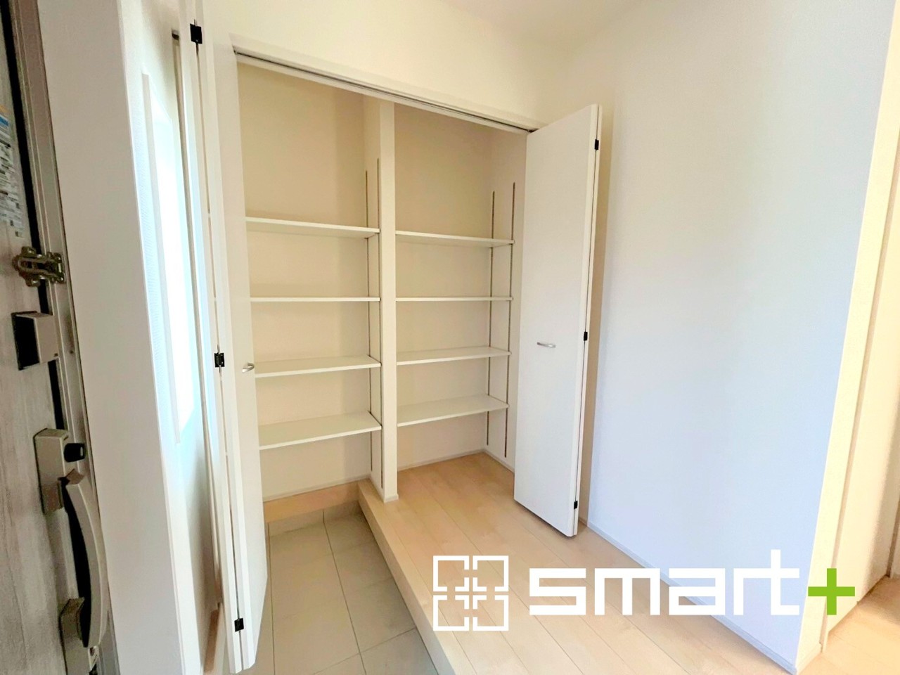 ~たっぷりしまえるシューズボックス~ ・備え付けのシューズボックスは充分な容量を確保。 ・便利な稼働式の棚で高さや大きさのあるものもスッキリしまえて快適。
