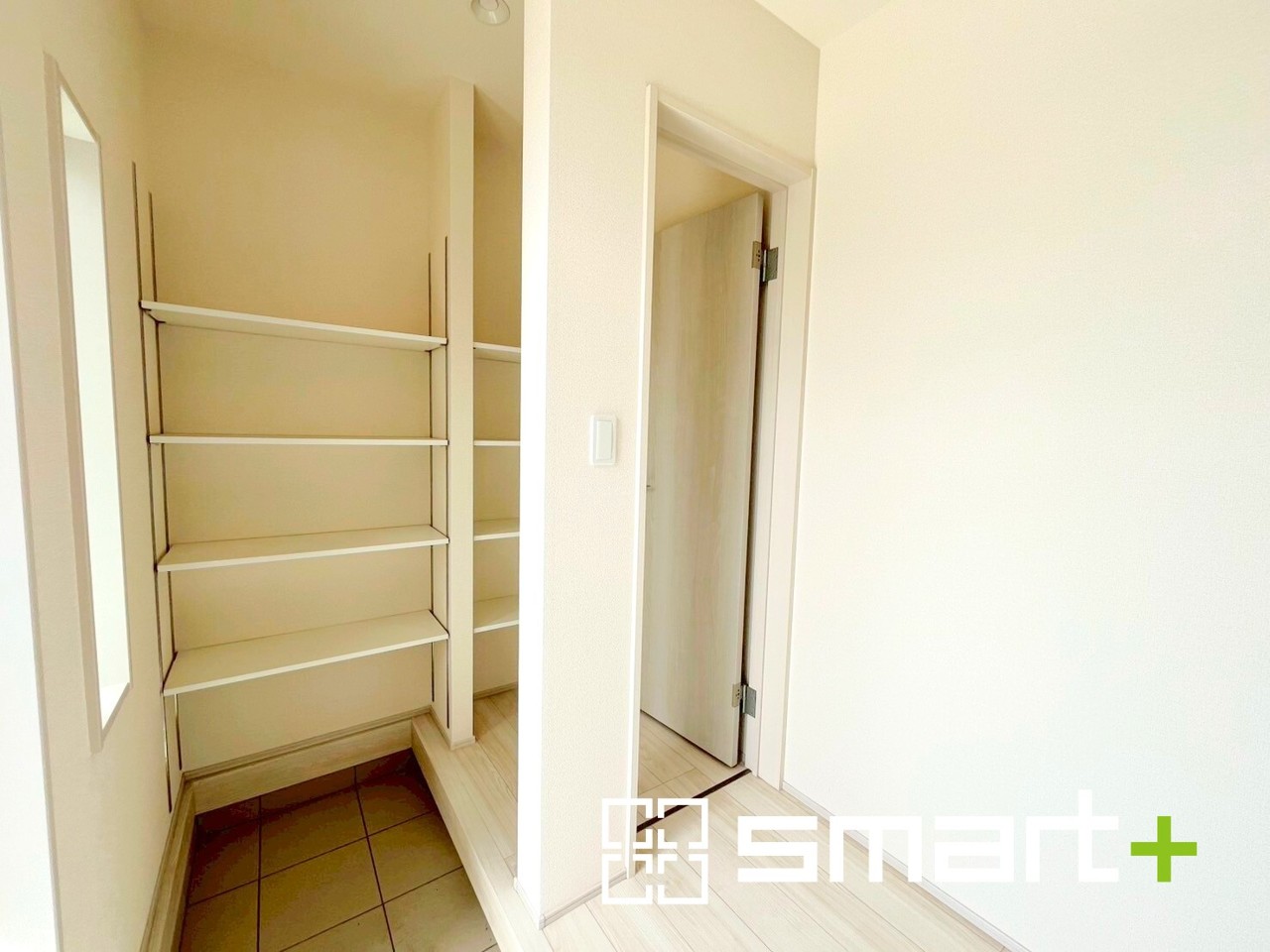 ~シューズインクロークのある玄関~ ・玄関横にシューズインクロークをご用意。 ・追加の靴置きとしてはもちろん、スキー・ゴルフなど趣味の用具の置場としてもご利用いただけます。