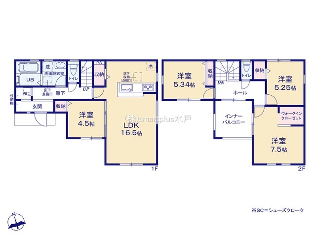 | 間取 | 4LDK + WIC、SIC (LDK16.5帖、洋室7.5帖、洋室5.34帖、洋室5.25帖、洋室4.5帖) | ||