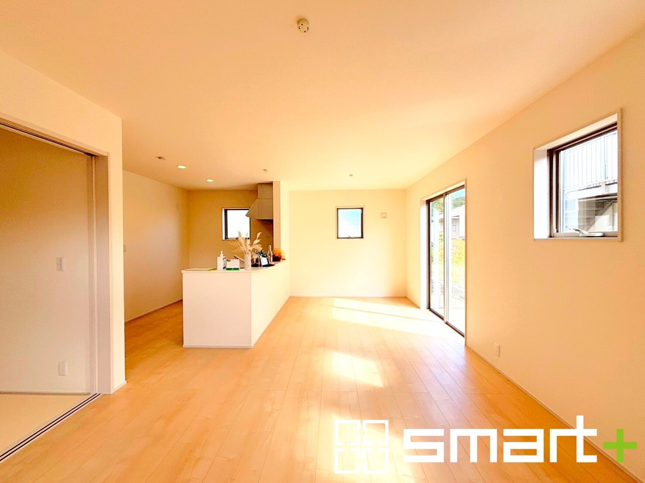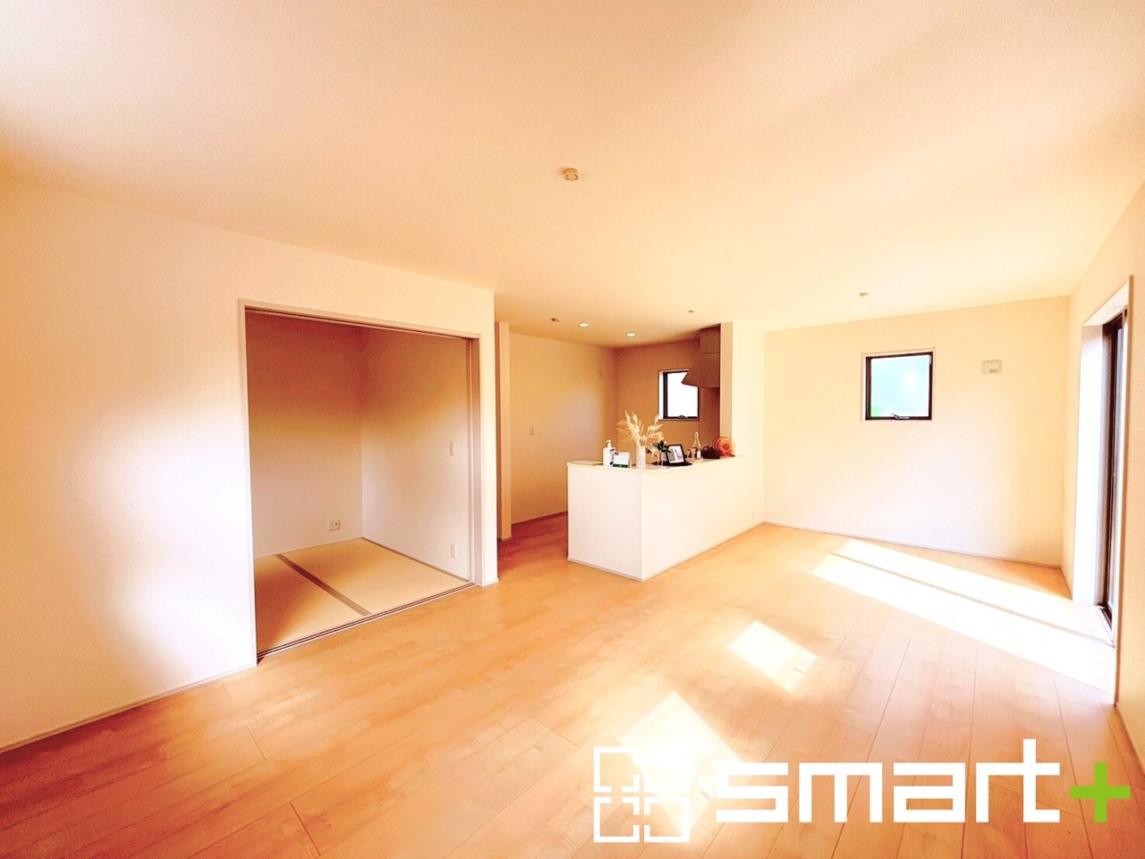 ~家族団らんにピッタリの広々リビング~ ・穏やかな陽だまりに包まれる居心地の良いLDKは、ご家族が集まる憩いのスペースに。 ・隣接の和室を続き間として利用すれば20帖超の広々空間になります。