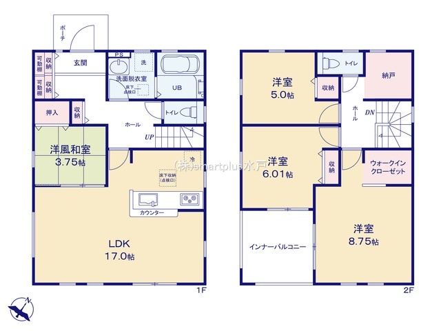 | 間取 | 4LDK + 納戸 (LDK17帖、洋室8.75帖、洋室6.01帖、洋室5帖、和室3.75帖) | ||