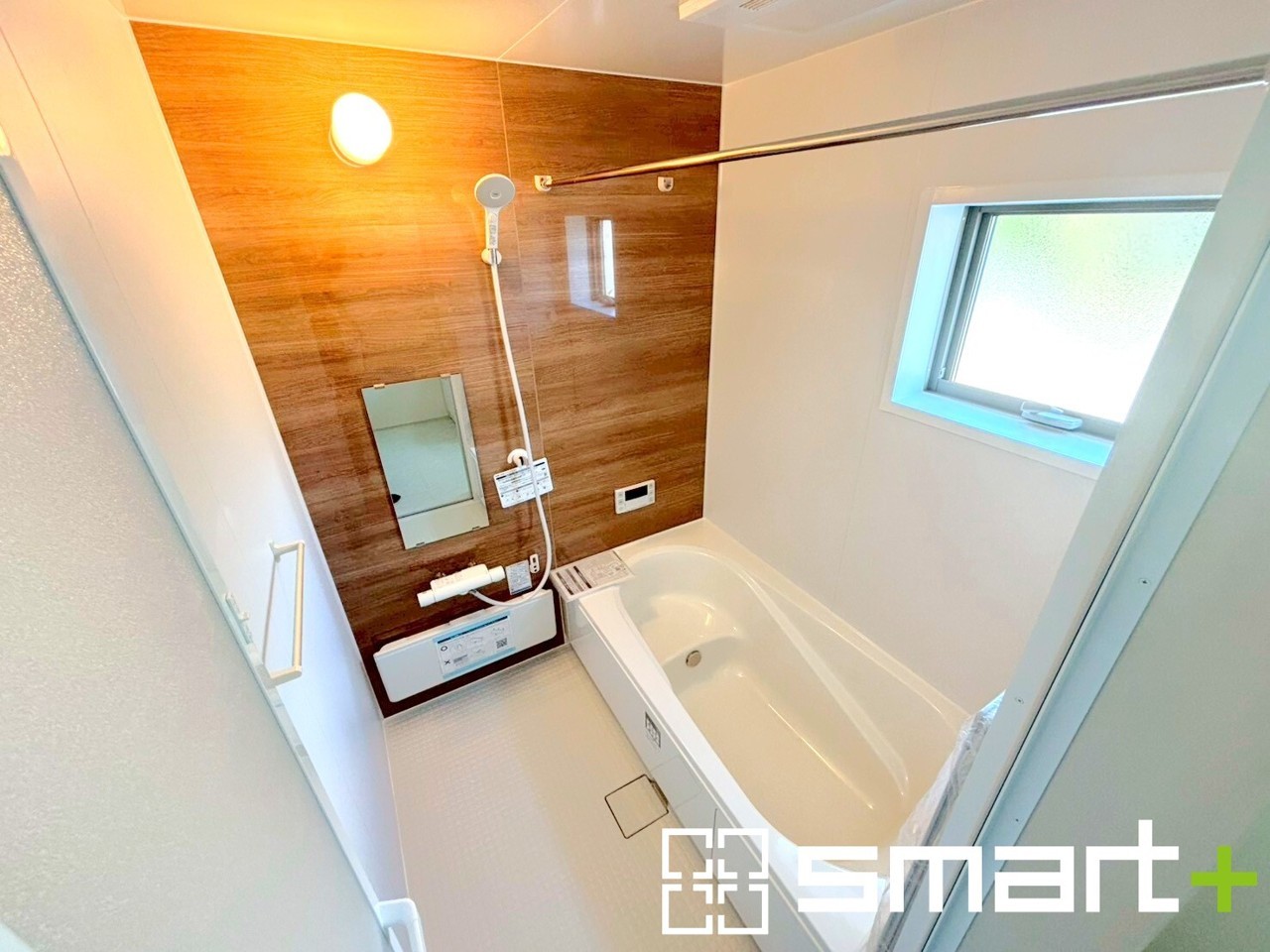2号棟 ~浴室乾燥機付きの浴室~ ・浴室には乾燥機が付いているので雨の日でも洗濯物を干すことが可能です。 ・水はけの良い床材など機能面も充実。マイクロバルなどオプションもご相談くださいませ。