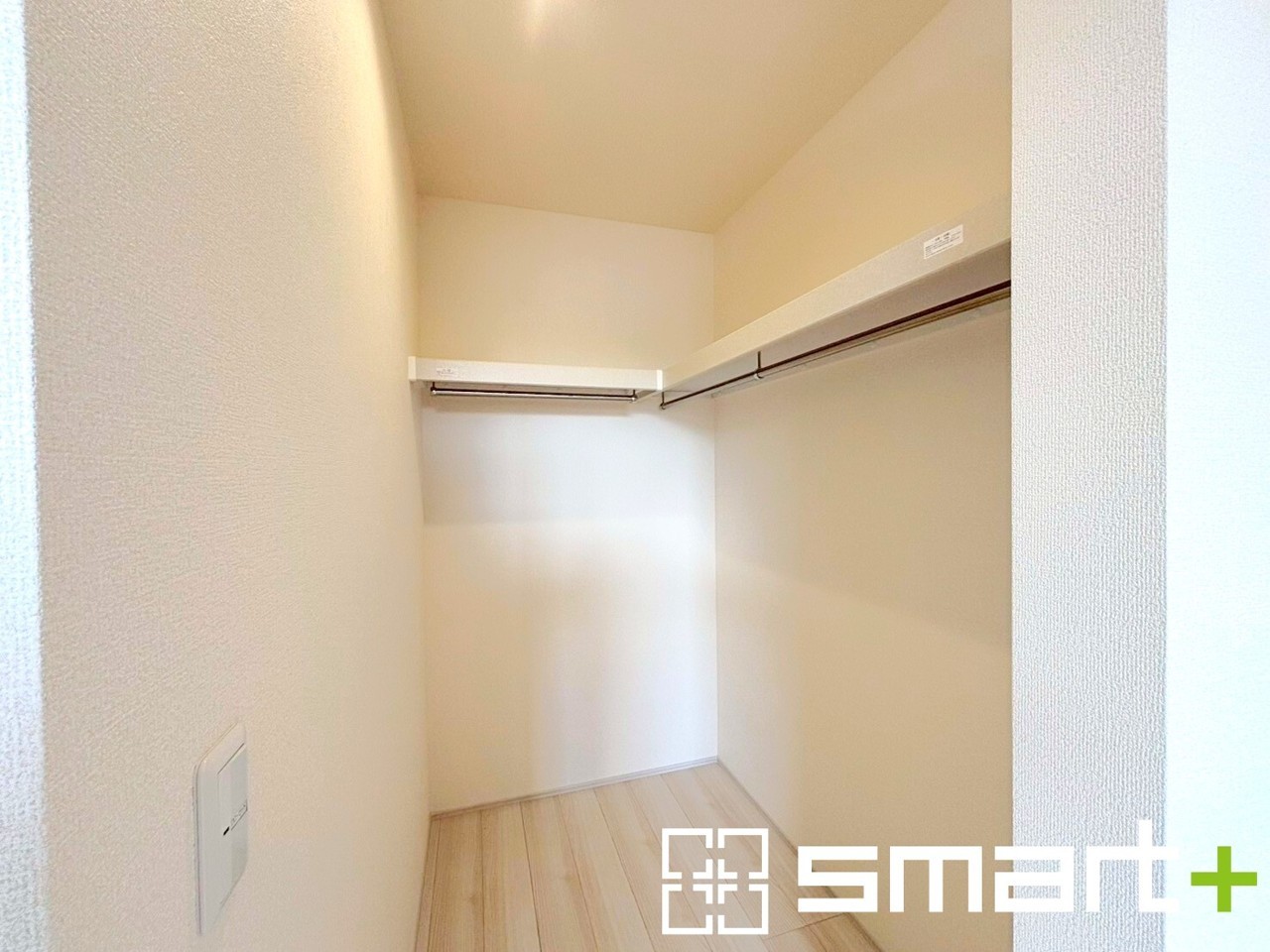 2号棟 ~ウォークインクローゼット~ ・衣類をハンガーに掛けたまま収納できるウォークインクローゼットは重宝しますね。 ・季節ものや小物類なども整理整頓しやすく生活空間が広がりますね。