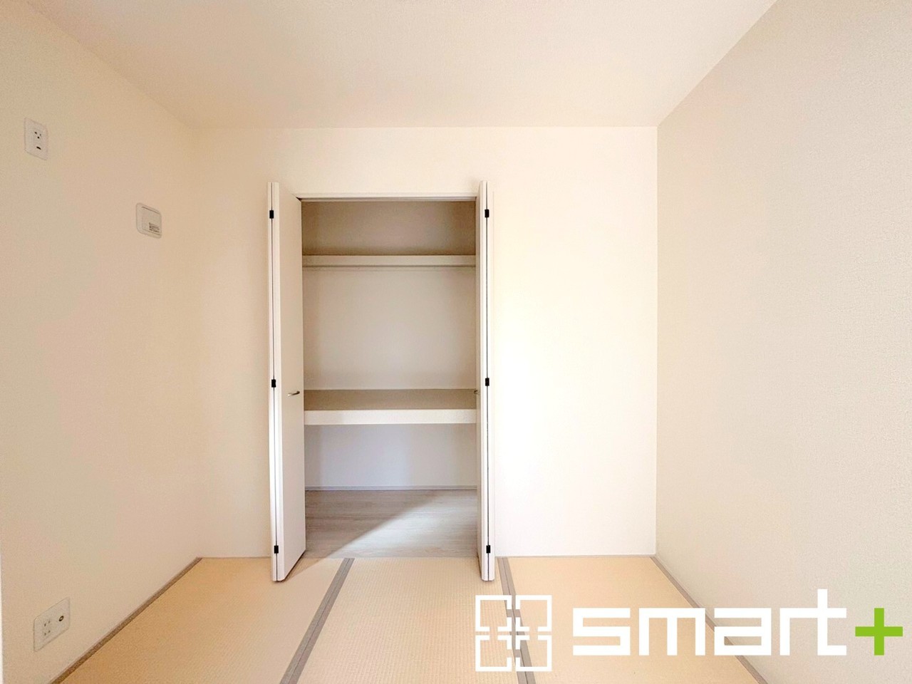 2号棟 ~リビング横の和室~ ・リビング横には開放感をプラスしてくれる和室。収納スペース付きで寝室にもお使いいただけます。 ・お子様のプレイルームやお昼寝、趣味のお部屋など、用途様々。