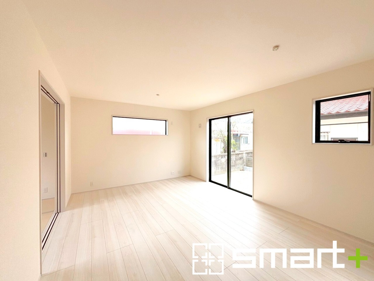 ~日当り良好のLDK~ ・たくさんの窓からたっぷりの陽光が差し込む明るいリビングで寛ぎのひと時を。 ・柔らかみのあるナチュラルカラーで、家具やカーテンの色も選びやすいです。
