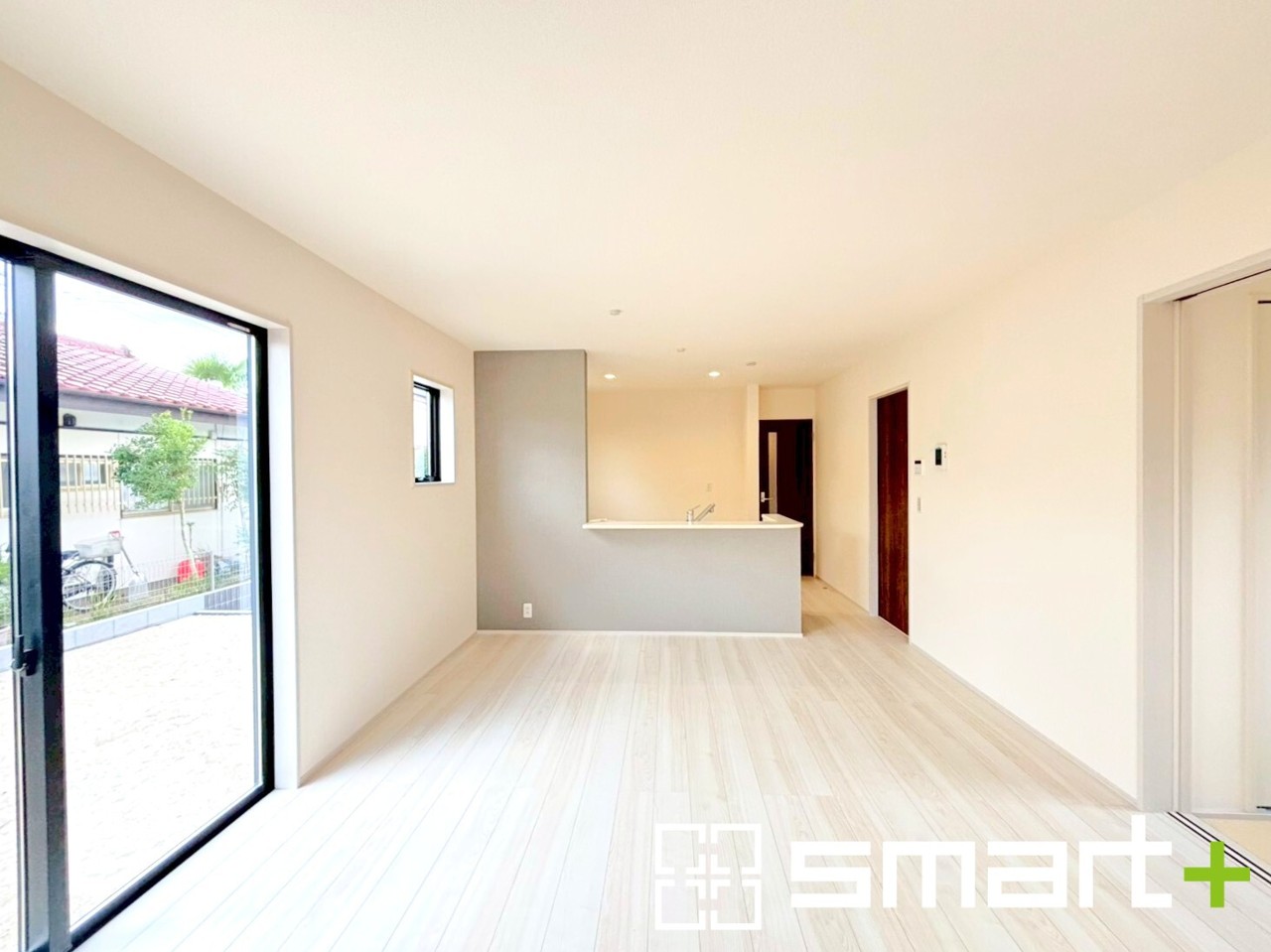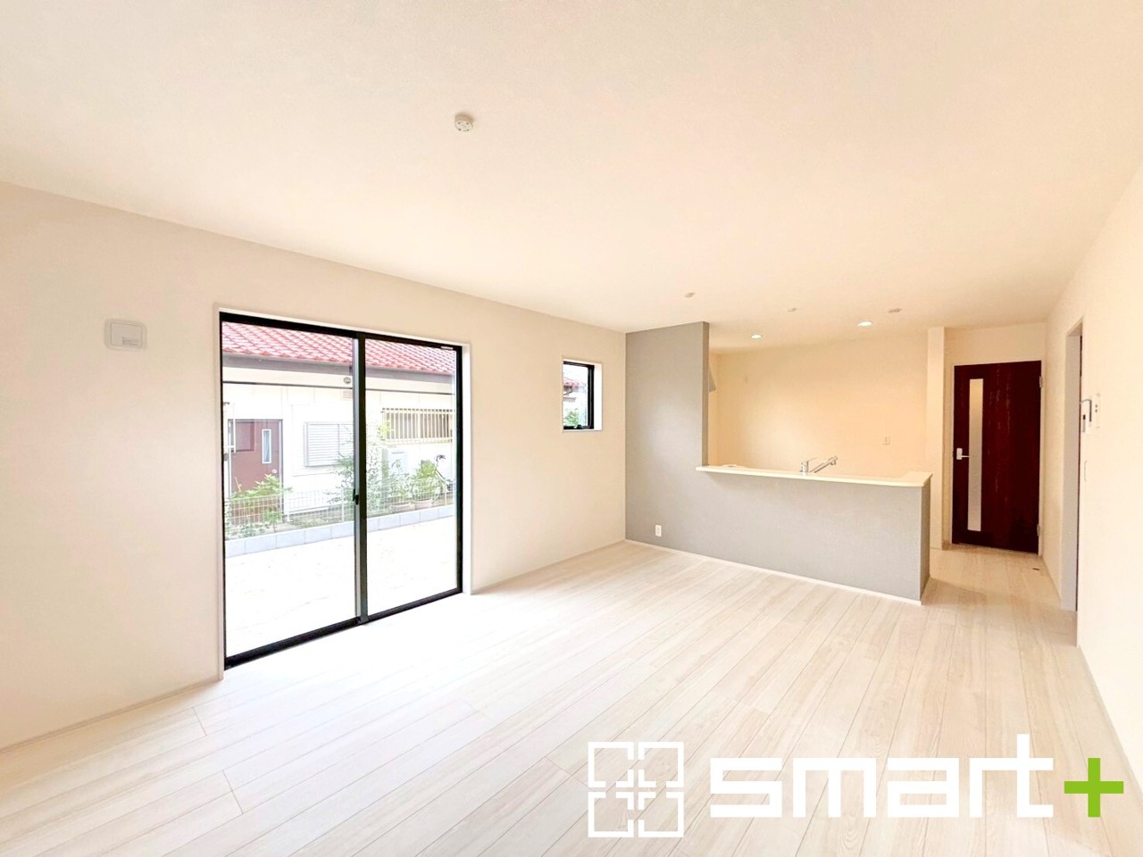 ~穏やかな陽の入るLDK~ ・穏やかな陽だまりに包まれる居心地の良いLDKは、ご家族が自然と集まる憩いのスペースに。 ・出来立てのお料理を運ぶのにも、食器の後片付けもラクラクなカウンターキッチン。