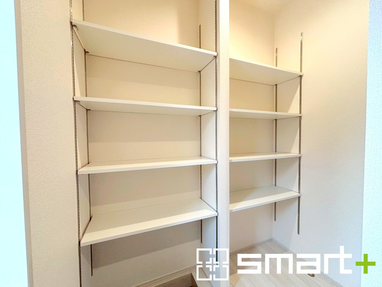 ~収納スペース充実~ ・広々とした玄関はシューズインクローク付。 ・便利な稼働式の棚で大きさのあるものもスッキリしまえて快適。