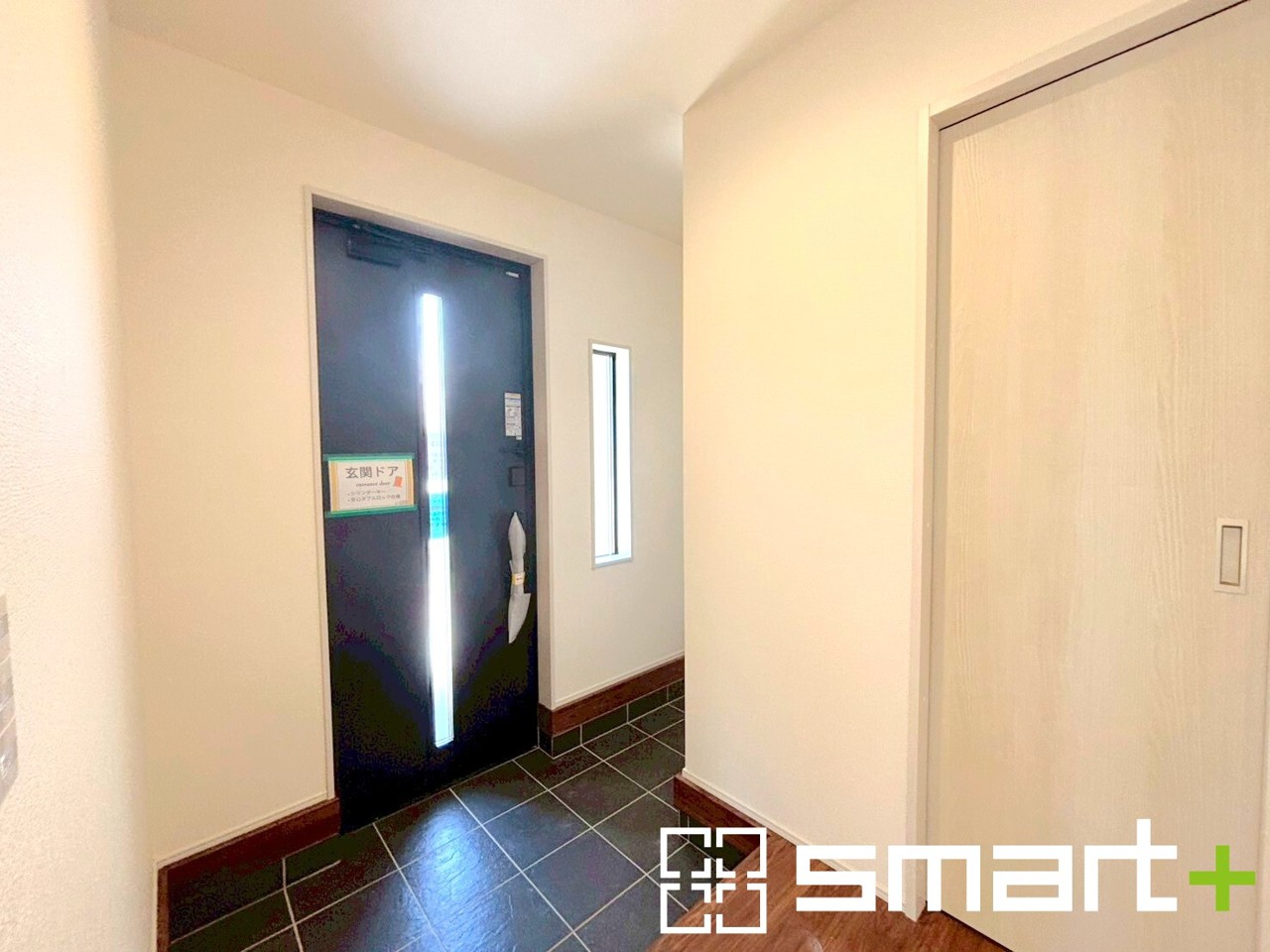 ~穏やかな陽が入る玄関~ ・窓に加えて玄関ドアのガラス部分からも穏やかな陽が入り、明るい玄関になります。 ・たっぷりの収納スペース付きなので、散らかりがちな玄関もスッキリ片付きます。