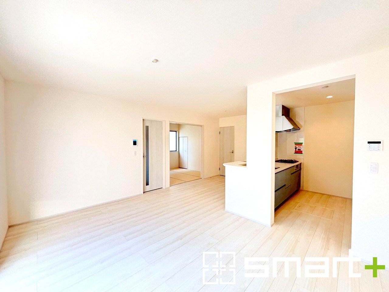 ~家族団らんにピッタリの広々リビング~ ・穏やかな陽だまりに包まれる居心地の良いLDKは、ご家族が集まる憩いのスペースに。 ・隣接の和室を続き間として利用すれば20帖超の広々空間になります。