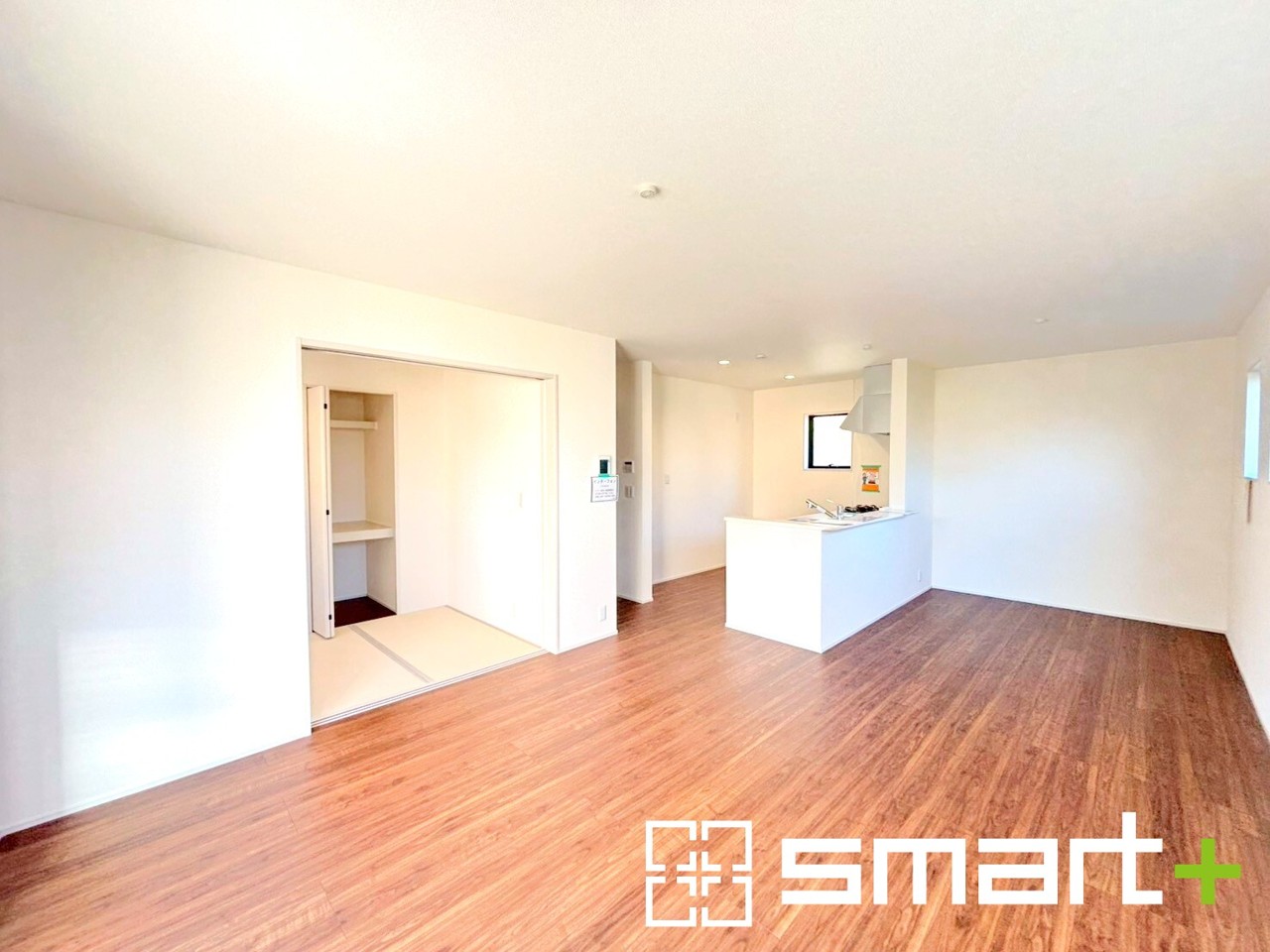 ~家族団らんにピッタリの広々リビング~ ・穏やかな陽だまりに包まれる居心地の良いLDKは、ご家族が集まる憩いのスペースに。 ・隣接の和室を続き間として利用すれば20帖の広々空間になります。