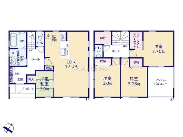 | 間取 | 4LDK + WIC、納戸 (LDK17帖、洋室7.75帖、洋室6帖、洋室5.75帖、和室3帖) | ||