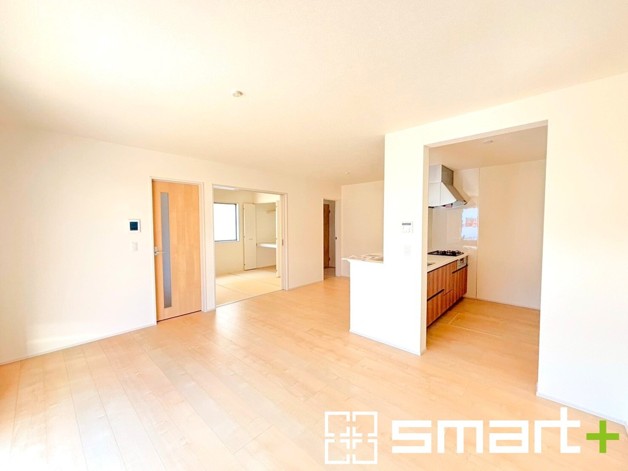 ~家族団らんにピッタリの広々リビング~ ・穏やかな陽だまりに包まれる居心地の良いLDKは、ご家族が集まる憩いのスペースに。 ・隣接の和室を続き間として利用すれば20帖超の広々空間になります。 (1号棟)
