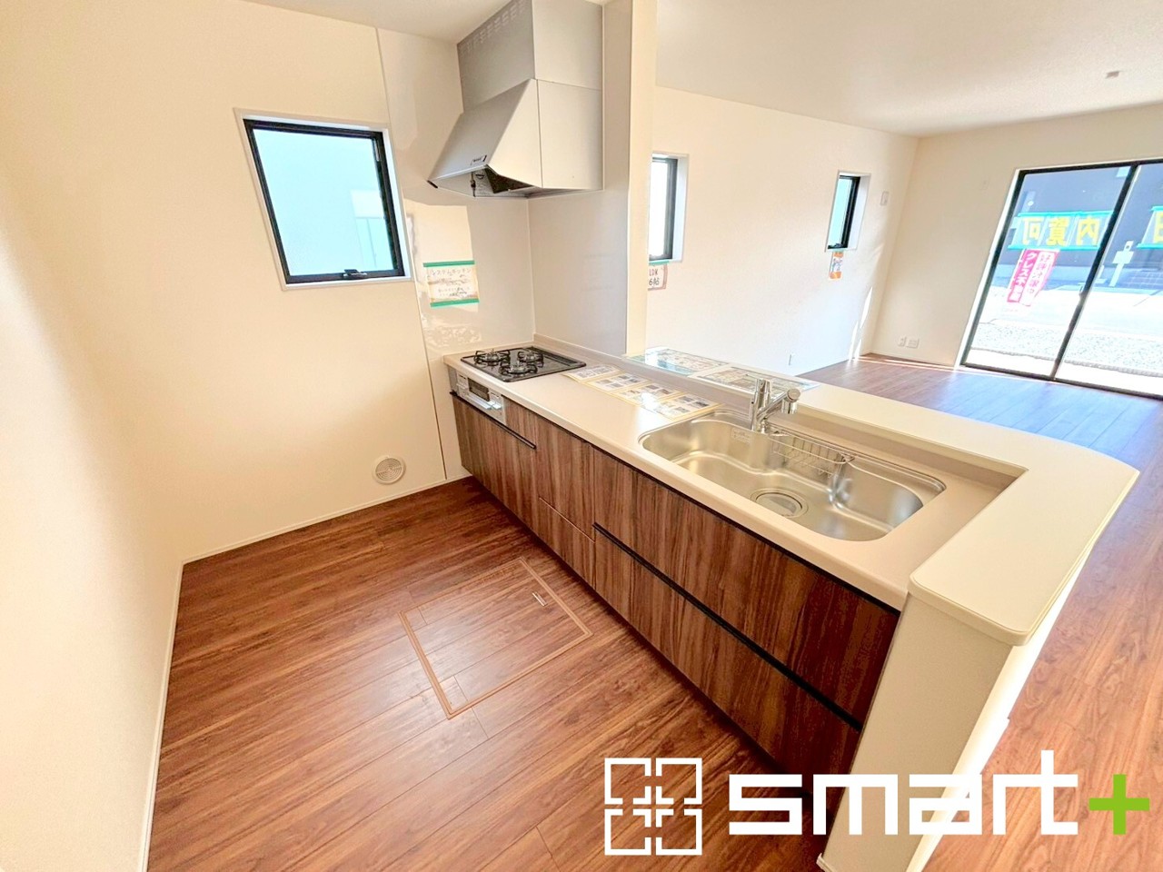 ~人気のカウンターキッチン~ ・キッチンには余計な柱が無いので、リビングが見渡せ開放感のある造りとなっております。 ・蛇口には浄水器が内蔵されるなど機能面でも優れたキッチンです。 (1号棟)