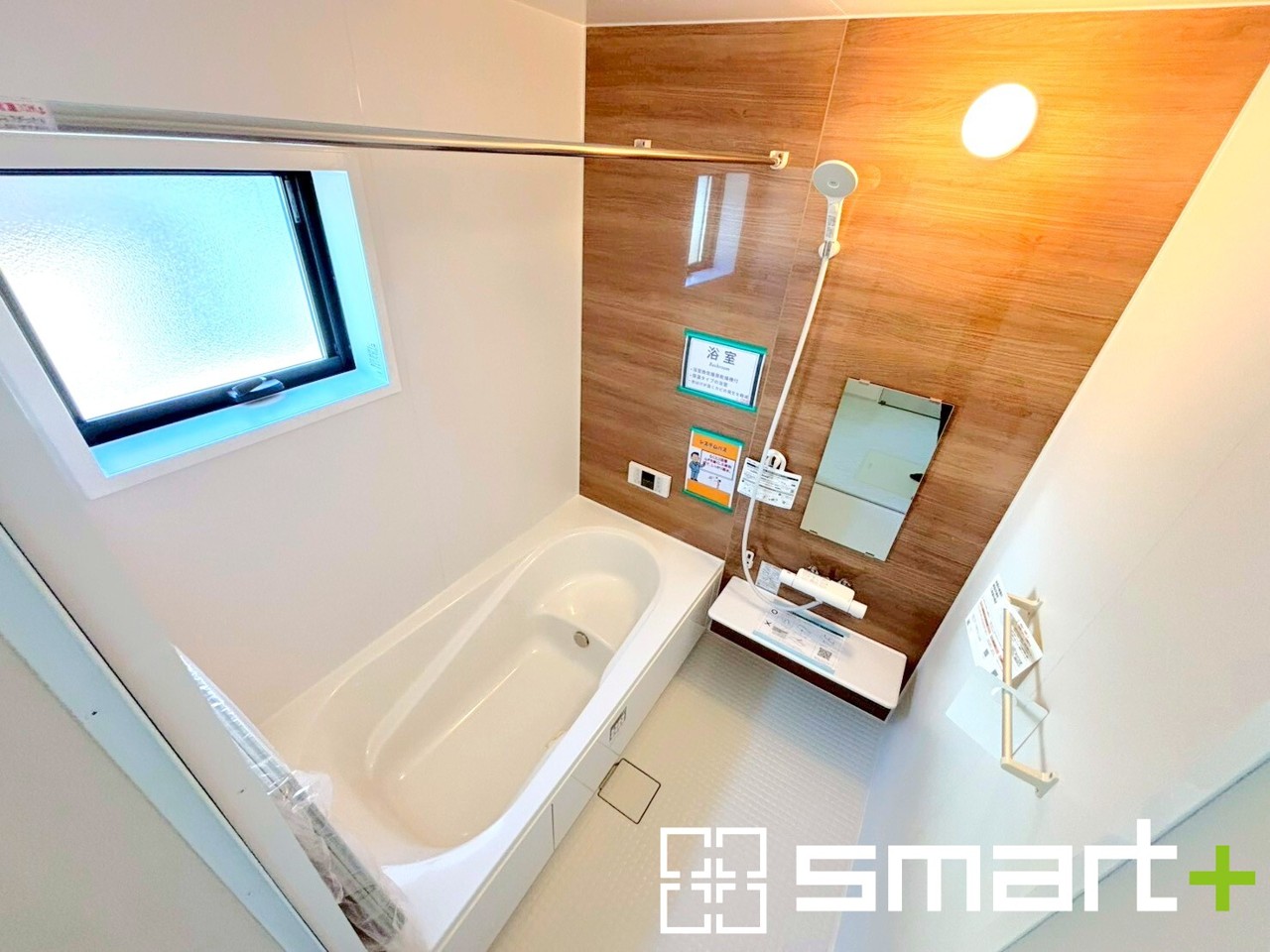 ~浴室乾燥機付きの浴室~ ・浴室には乾燥機が付いているので雨の日でも洗濯物を干すことが可能です。 ・水はけの良い床材など機能面も充実。マイクロバルなどオプションもご相談くださいませ。 (1号棟)