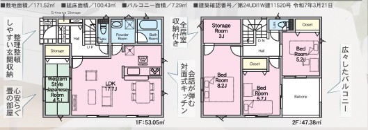 | 土地面積 | 171.52m² ~ 173.33m² 実測 | ||