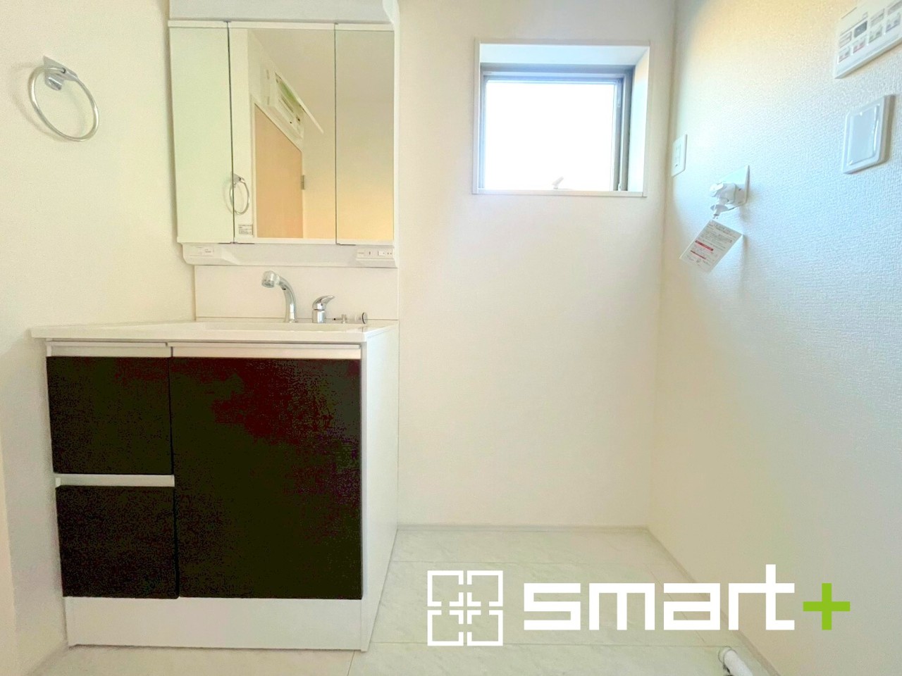 ~人気の三面鏡を採用~ ・洗面台は三面鏡仕様なので鏡の角度を変える事で頭の後ろの方までご確認可能です。 ・鏡の裏が収納になっておりますので、洗面台周りもスッキリと片付きます。
