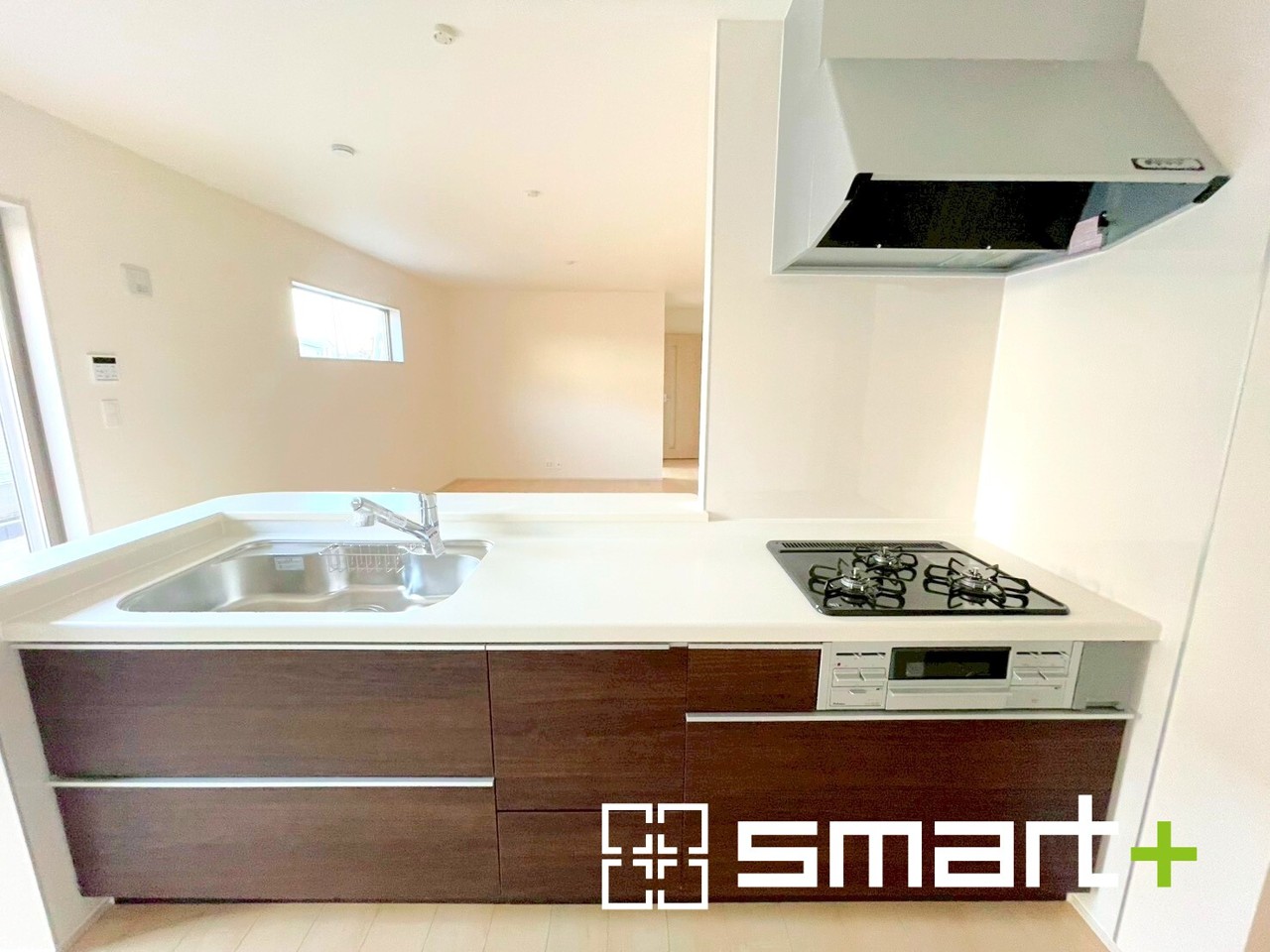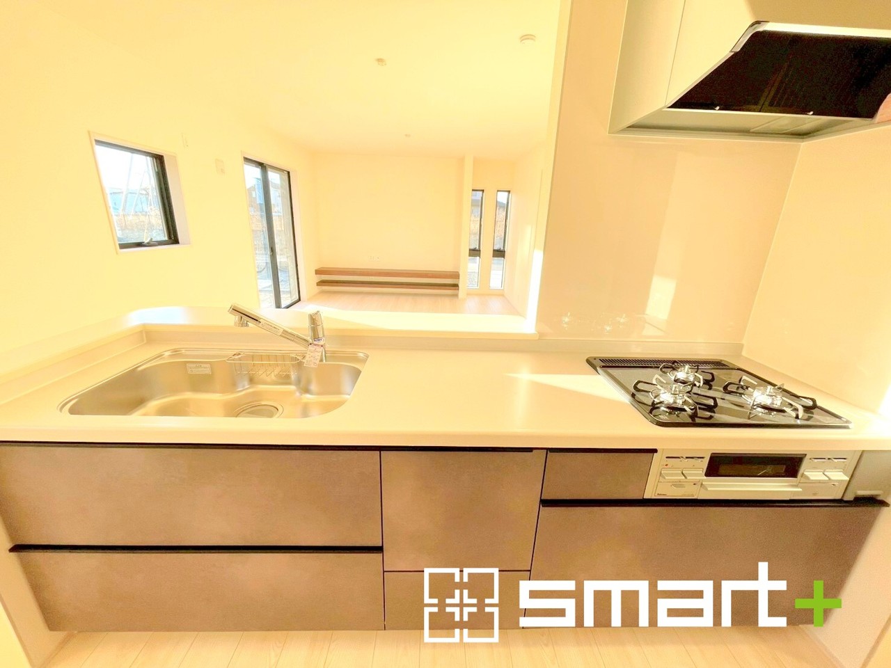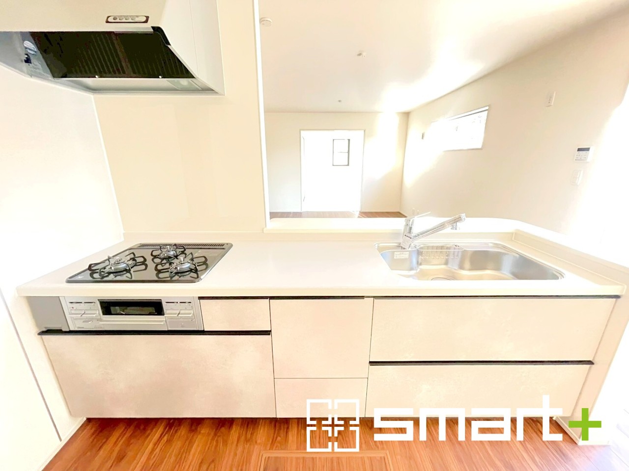 ~人気のカウンターキッチン~ ・キッチンは人気のカウンタータイプを採用。「ご家族の顔が見える」造りです。 ・汚れの付きづらい天板、水はけの良いシンクなど機能面でも充実の仕様。 (1号棟)