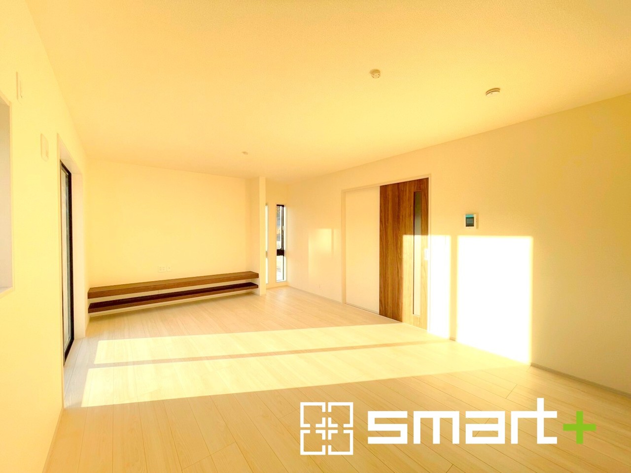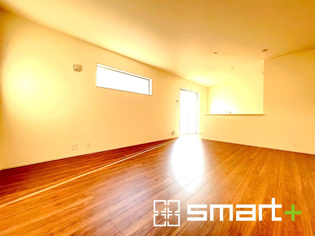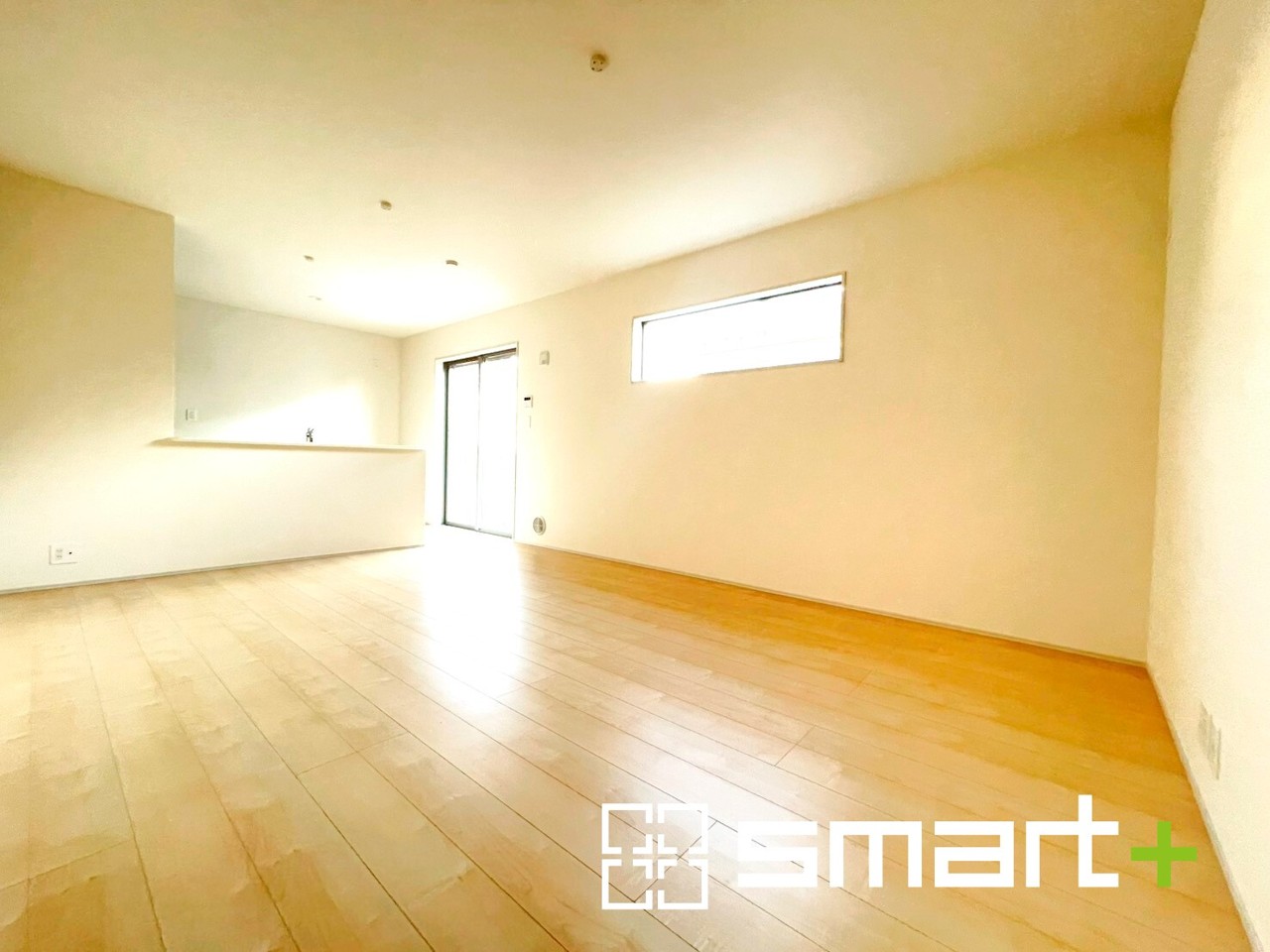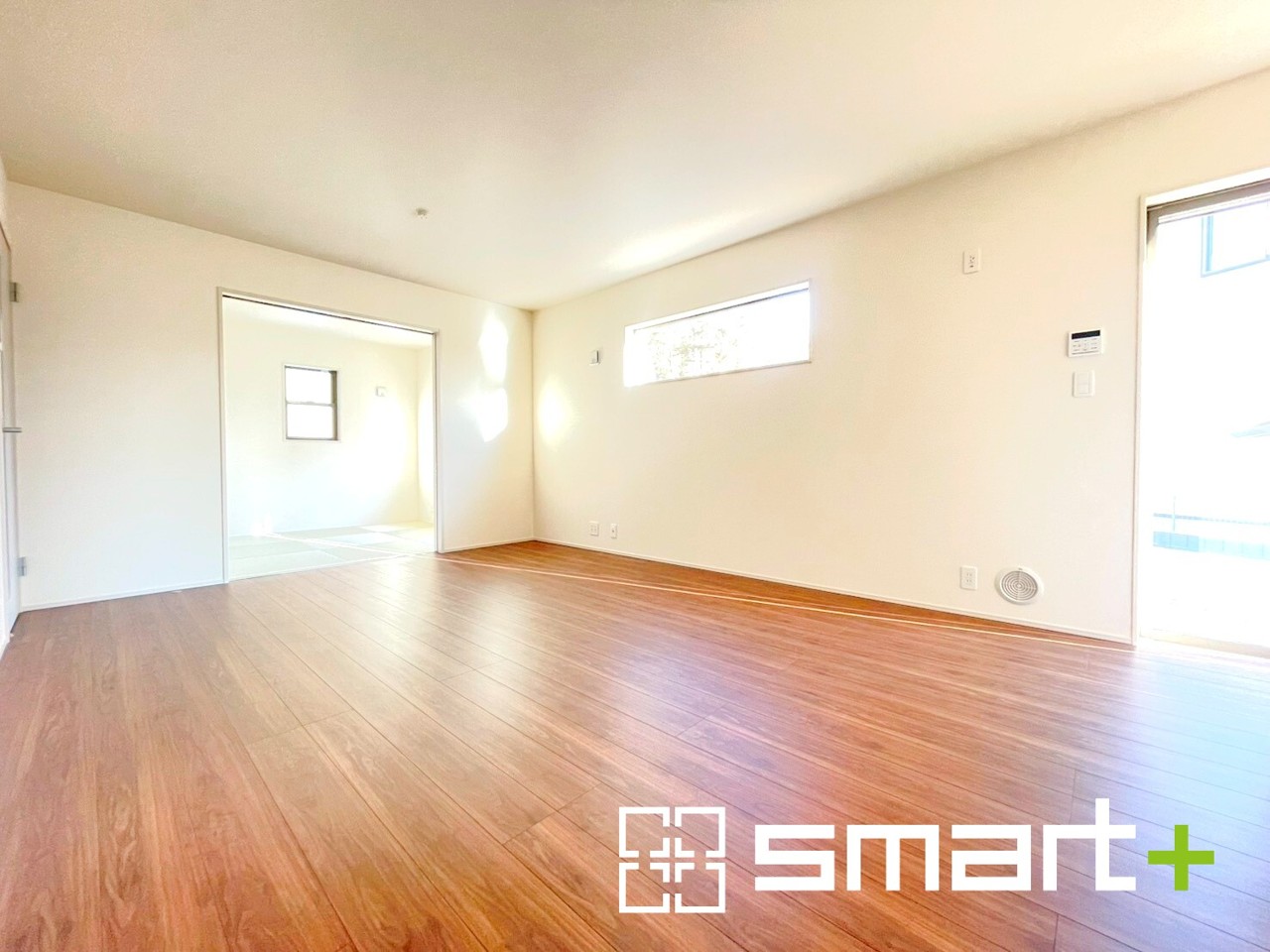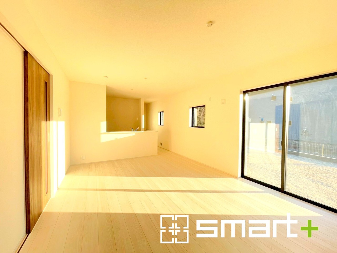1号棟 ~穏やかな陽の入るLDK~ ・大きな窓のあるLDKは陽当りも良好で明るい空間となっております。 ・ご家族団らんなど過ごす時間の多いLDKが明るいのは嬉しいポイントですね。