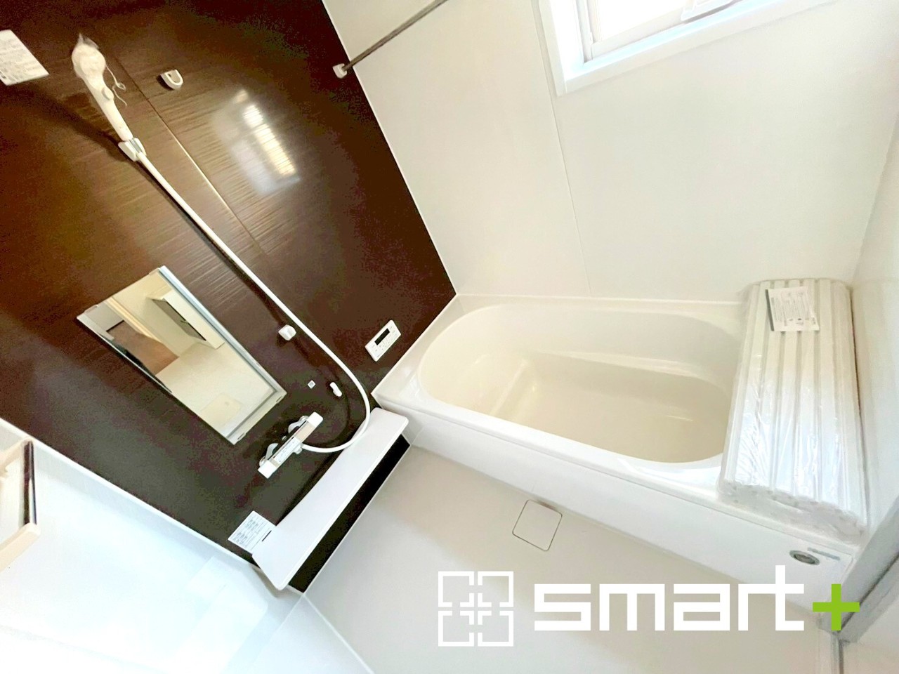 ~浴室乾燥機付きの浴室~ ・浴室には乾燥機が付いているので雨の日でも洗濯物を干すことが可能です。 ・水はけの良い床材など機能面も充実。マイクロバルなどオプションもご相談くださいませ。 (1号棟)