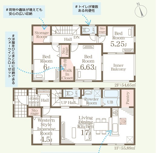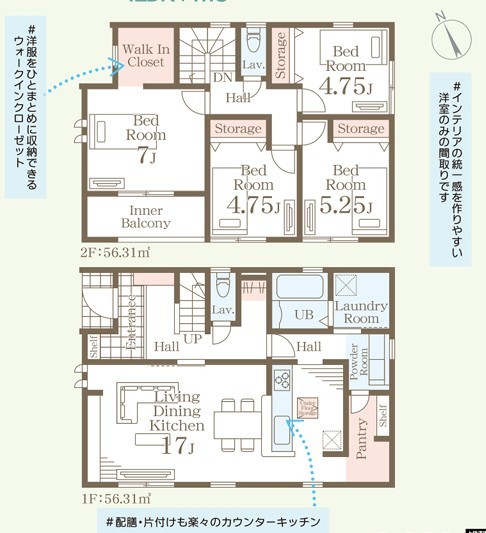 1号棟 ~収納豊富なプランを採用~ ・ウォークインクローゼット、パントリーなど収納豊富なプランを採用。 ・今のお住まいと収納力をぜひ比較してみてください。