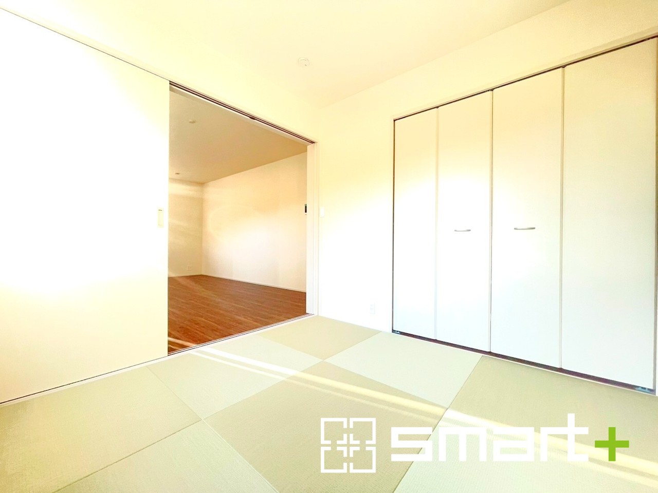 ~「和みの部屋」和室をご用意~ ・ゴロンと寝転がったり、お子様のいるご家庭ではお子様を寝かしつけたり、などご活用いただける和室をご用意。 ・やはり畳の香りは心が落ち着きますね。 (1号棟)