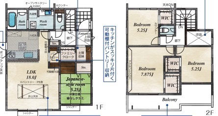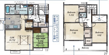 1号棟 ~収納豊富なプランを採用~ ・ウォークインクローゼット、パントリー、土間収納など収納豊富なプランを採用。 ・今のお住まいと収納力をぜひ比較してみてください。
