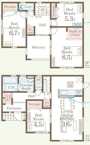 | 間取 | 4LDK + WIC、SIC (LDK16帖、洋室8.5帖、洋室6.7帖、洋室5.3帖、洋室4.5帖) | ||