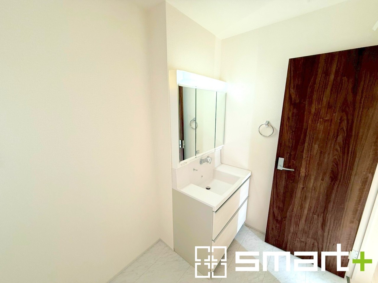 ~人気の三面鏡を採用~ ・洗面台は三面鏡仕様なので鏡の角度を変える事で頭の後ろの方までご確認可能です。 ・鏡の裏が収納になっておりますので、洗面台周りもスッキリと片付きます。