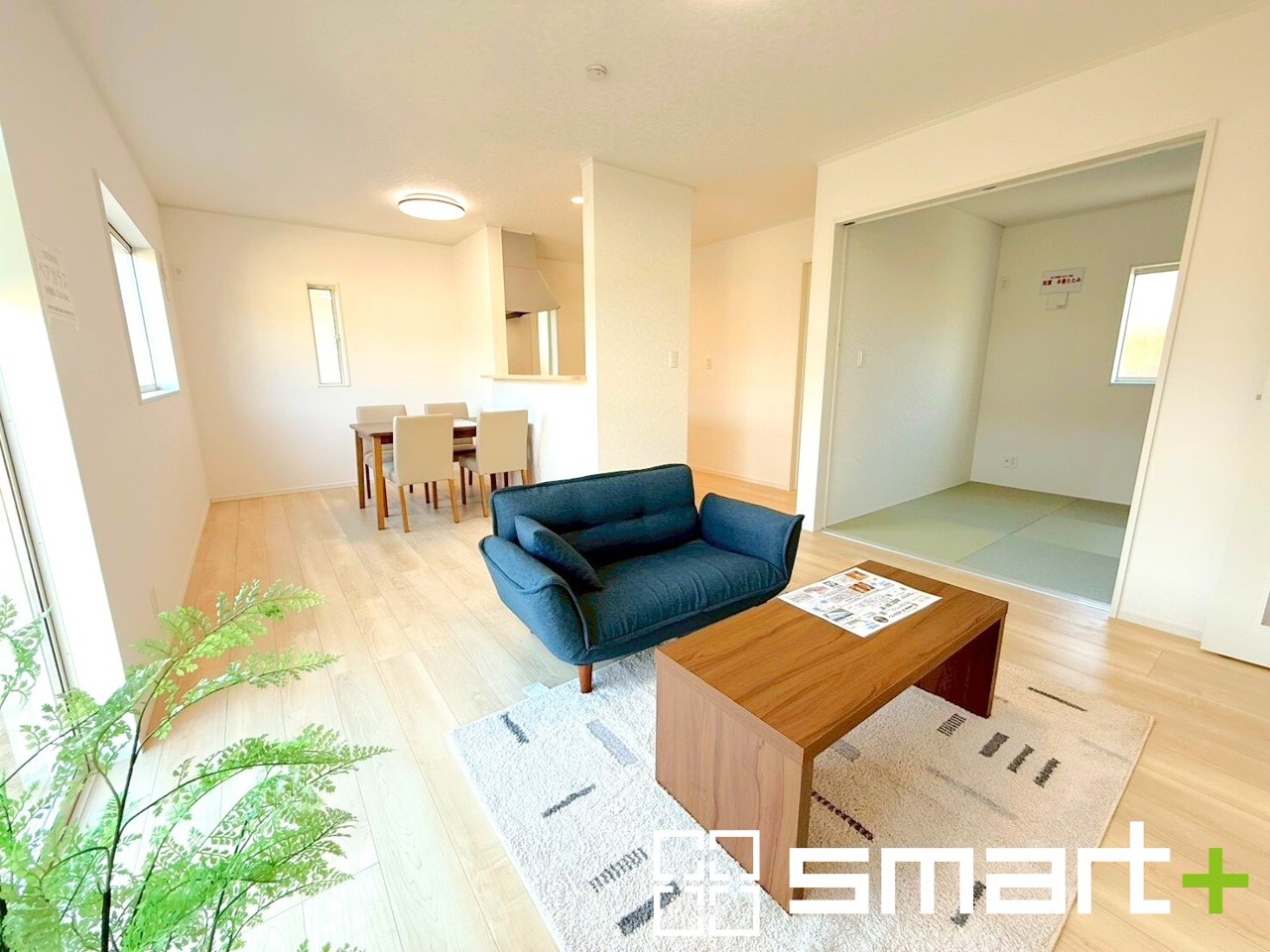 ~家族団らんにピッタリの広々リビング~ ・穏やかな陽だまりに包まれる居心地の良いLDKは、ご家族が集まる憩いのスペースに。 ・隣接の和室を続き間として利用すれば20帖超の広々空間になります。