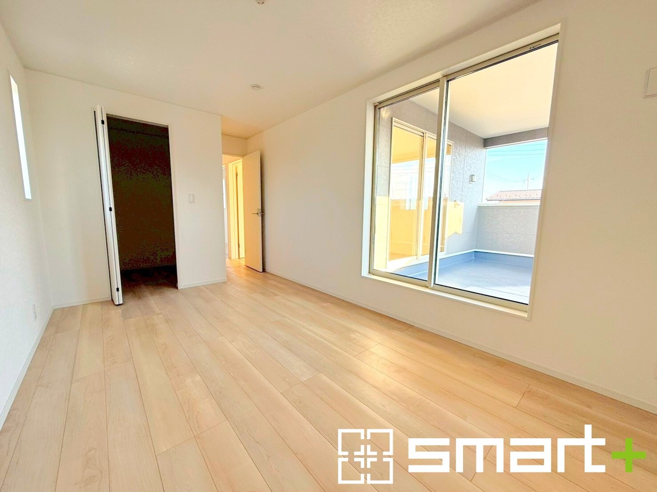 ~明るく暖かな光が差し込む洋室~ ・大きな窓からたっぷりの光が舞い込み、お部屋全体を優しく包み込んでくれます。 ・大容量の収納スペースで整理整頓しやすく、生活空間が広がりますね。