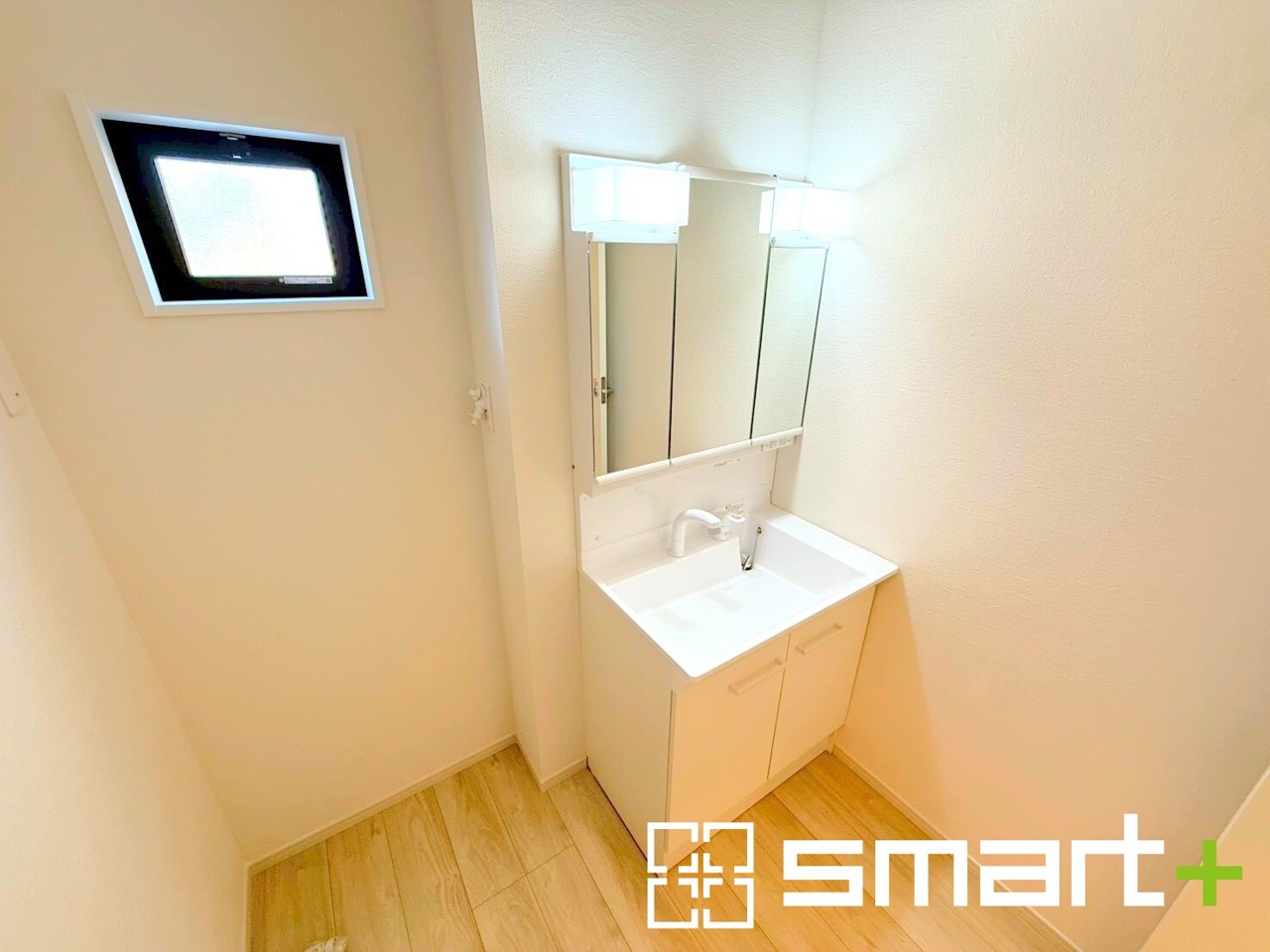 ~人気の三面鏡を採用~ ・洗面台は三面鏡仕様なので鏡の角度を変える事で頭の後ろの方までご確認可能です。 ・鏡の裏が収納になっておりますので、洗面台周りもスッキリと片付きます。