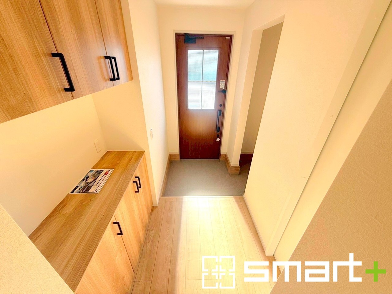 ~お住まいの顔「玄関」~ ・木のぬくもりを感じる木目調の玄関ドアを採用する事でお住まいの「顔」の印象が大きく変わりますね。 ・毎日帰宅した際に嬉しくなる仕様です。