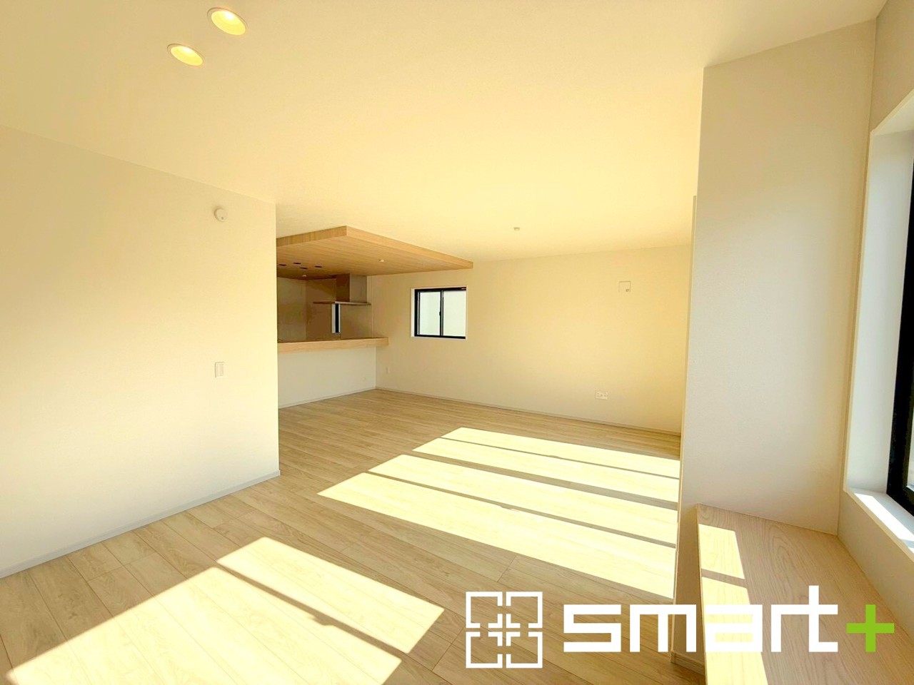 1号棟 ~穏やかな陽の入るLDK~ ・大きな窓のあるLDKは陽当りも良好で明るい空間となっております。 ・ご家族団らんなど過ごす時間の多いLDKが明るいのは嬉しいポイントですね。