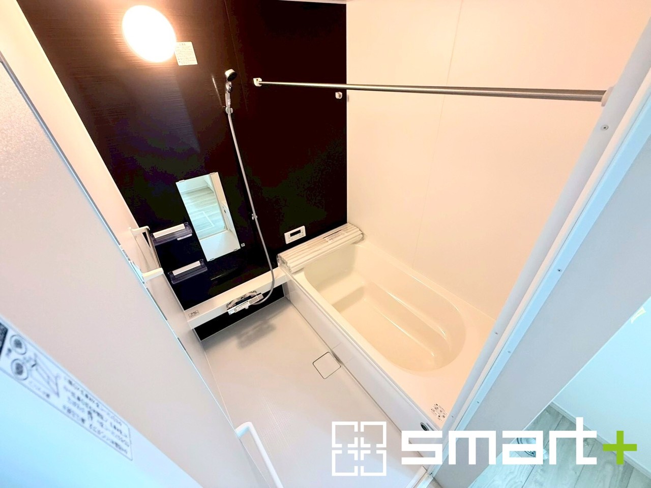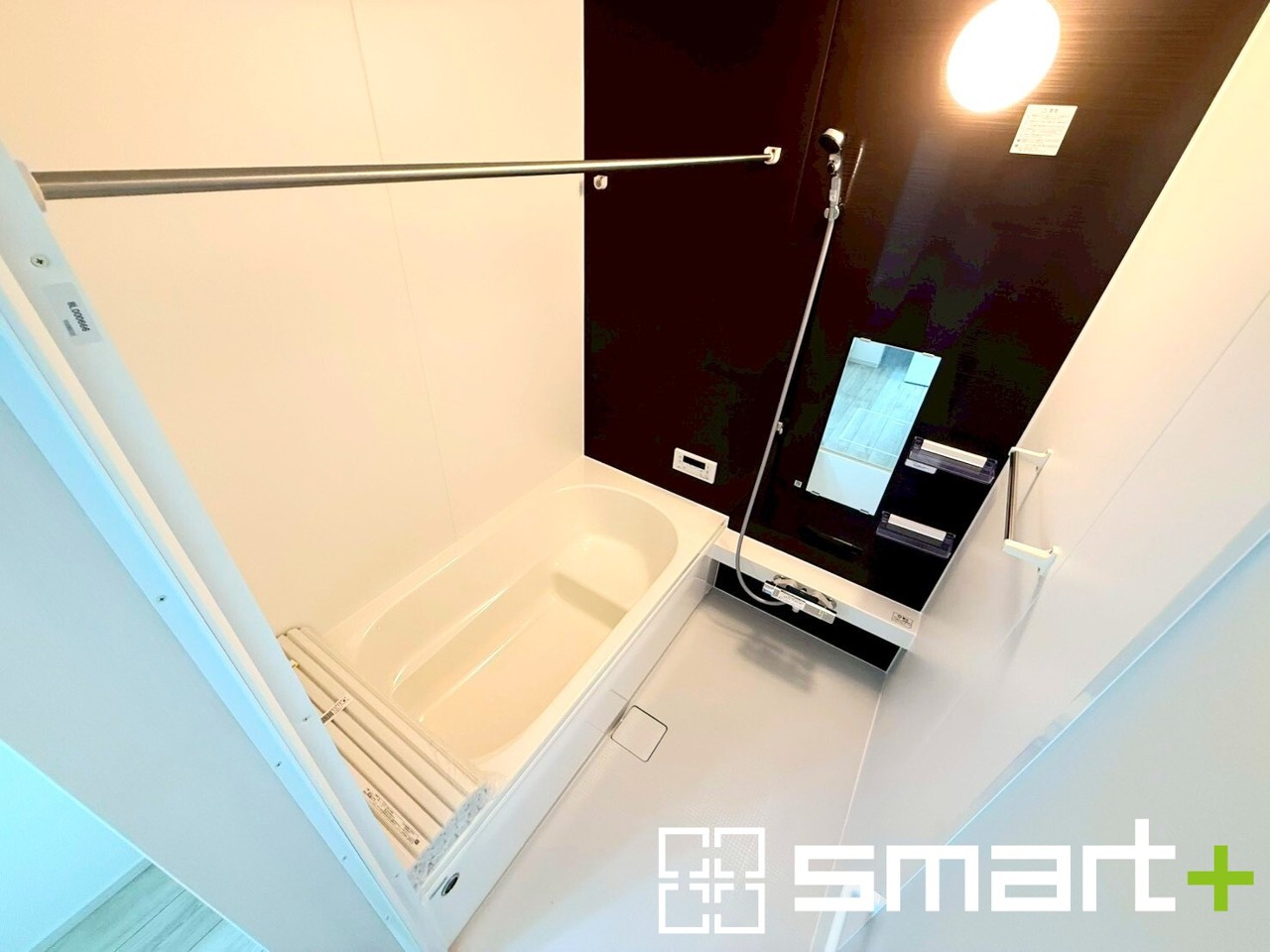 1号棟 ~浴室乾燥機付きの浴室~ ・浴室には乾燥機が付いているので雨の日でも洗濯物を干すことが可能です。 ・水はけの良い床材など機能面も充実。マイクロバルなどオプションもご相談くださいませ。