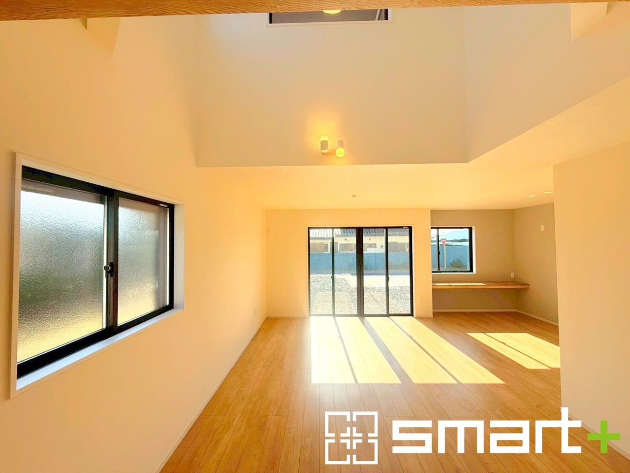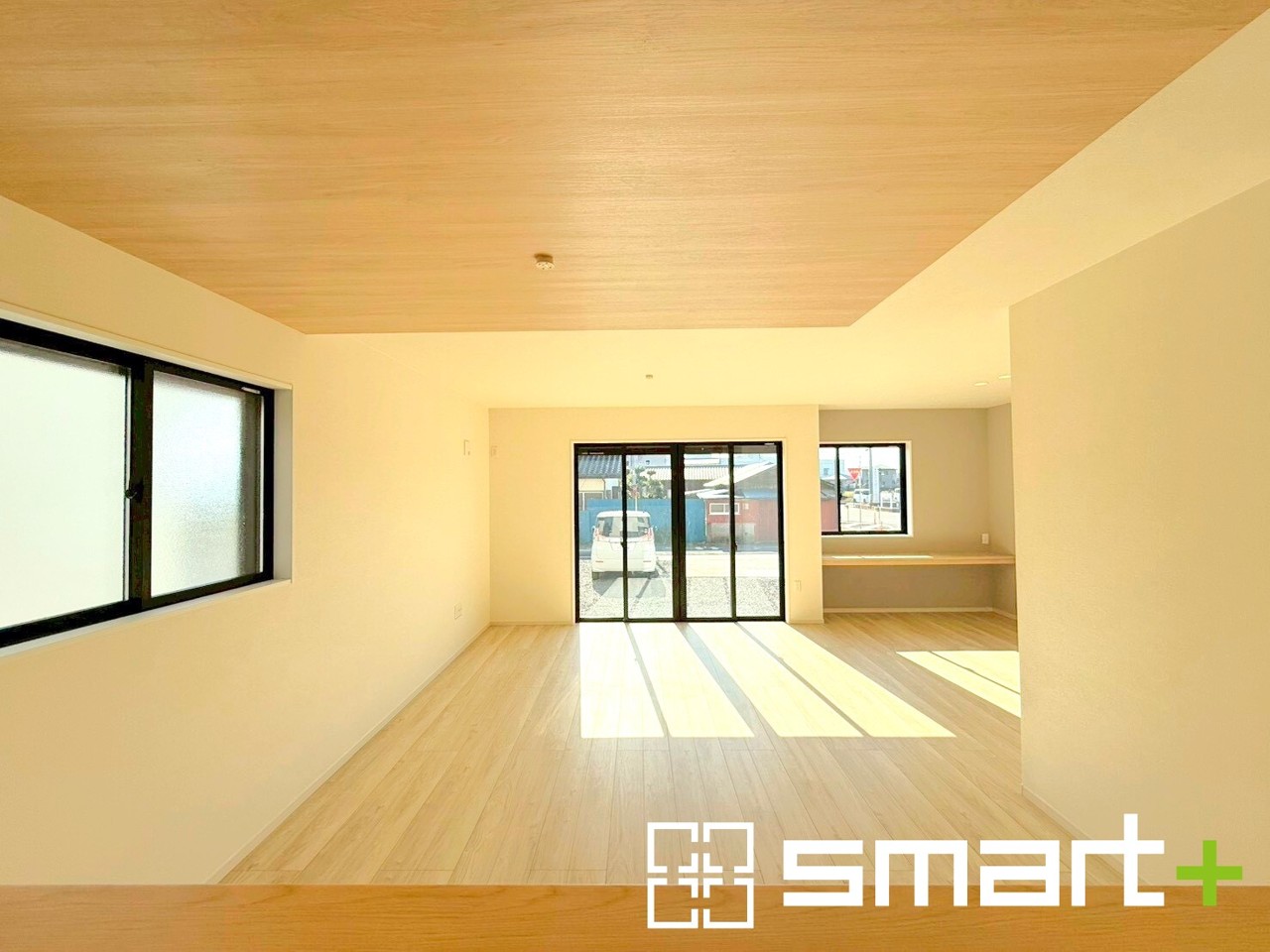 2号棟 ~穏やかな陽の入るLDK~ ・大きな窓のあるLDKは陽当りも良好で明るい空間となっております。 ・ご家族団らんなど過ごす時間の多いLDKが明るいのは嬉しいポイントですね。