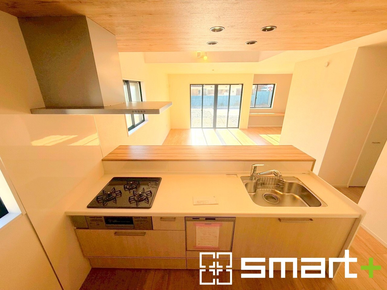 1号棟 ~食器洗浄機を標準装備~ ・キッチンにはビルトインタイプの食器洗浄機を標準装備。 ・家事にかける時間を削減でき、「自分時間」を増やすことができる嬉しいアイテムです。