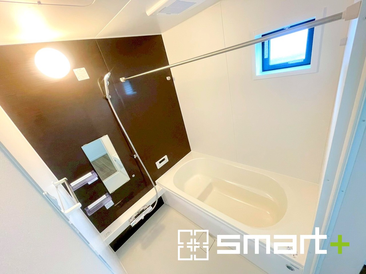 4号棟 ~浴室乾燥機付きの浴室~ ・浴室には乾燥機が付いているので雨の日でも洗濯物を干すことが可能です。 ・水はけの良い床材など機能面も充実。マイクロバルなどオプションもご相談くださいませ。