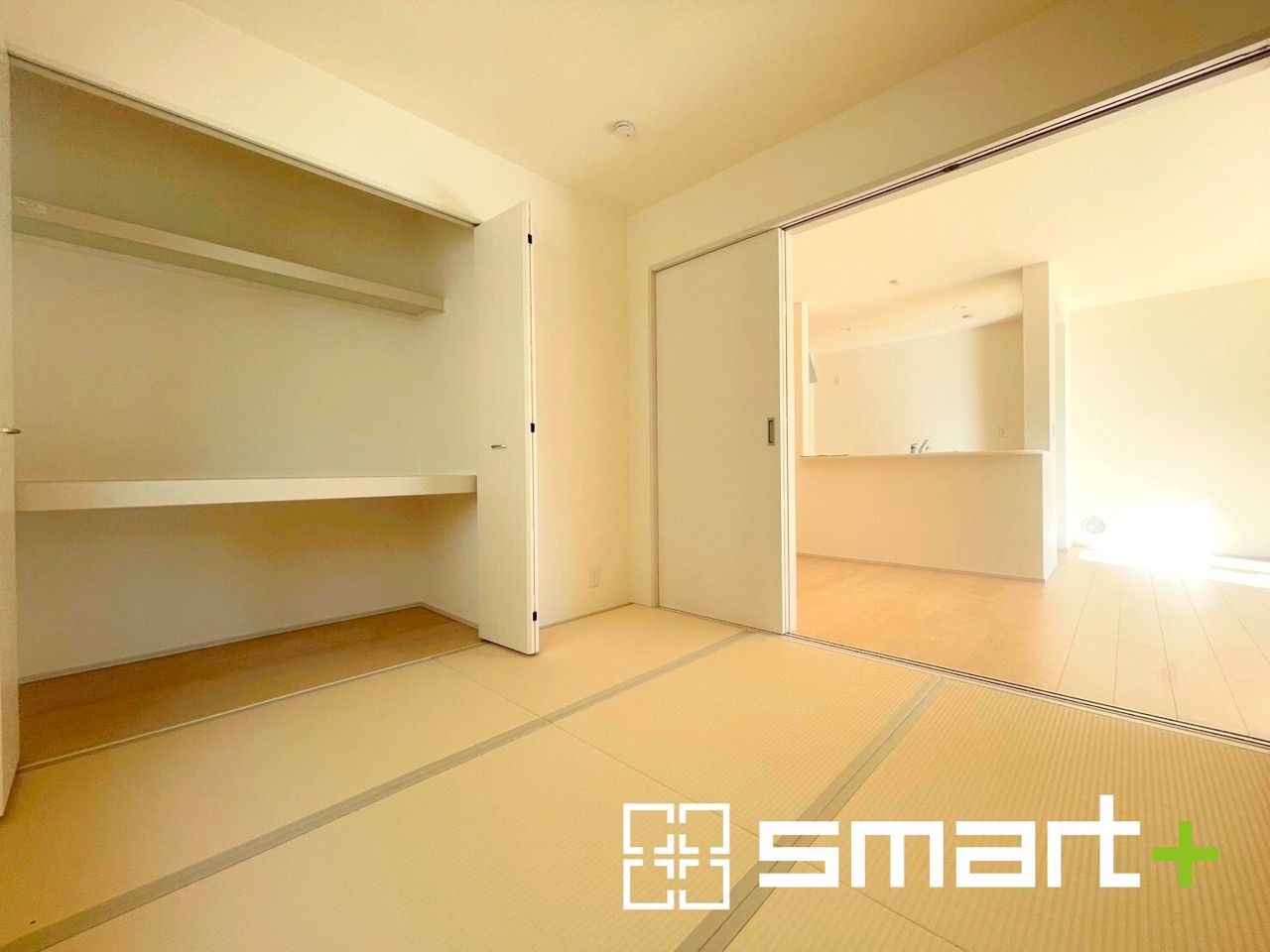 ~リビング横の和室~ ・リビング横には開放感をプラスしてくれるわ室。収納スペース付きで寝室にもお使いいただけます。 ・お子様のプレイルームやお昼寝、趣味のお部屋など、用途様々ですね。
