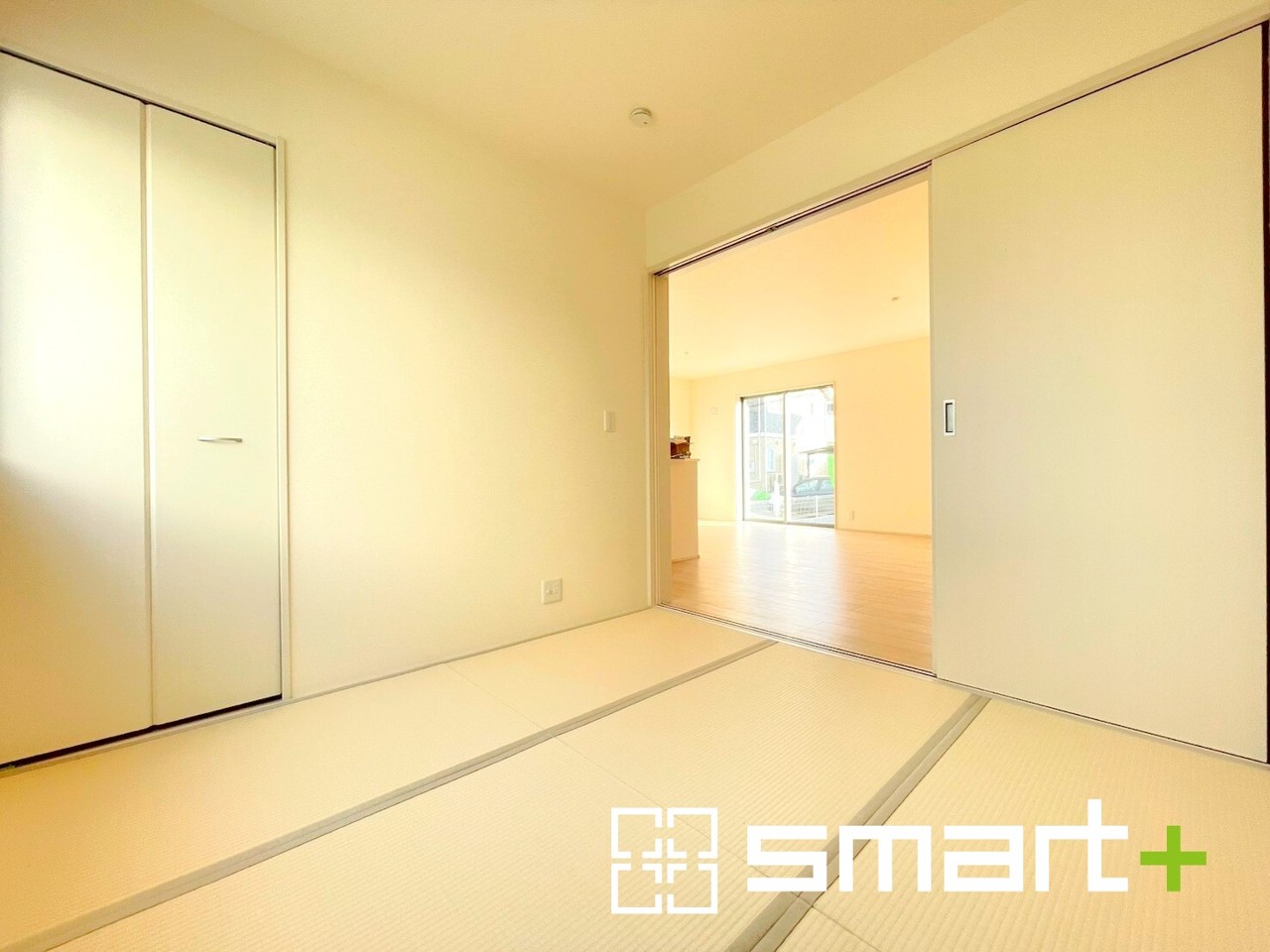 ~リビング横の和室~ ・リビングに開放感をプラスしてくれる和室付き。畳敷きに建具は洋風というハイブリッド型の「和洋室」タイプです。 ・お子様のプレイルーム、お昼寝など用途様々ですね。