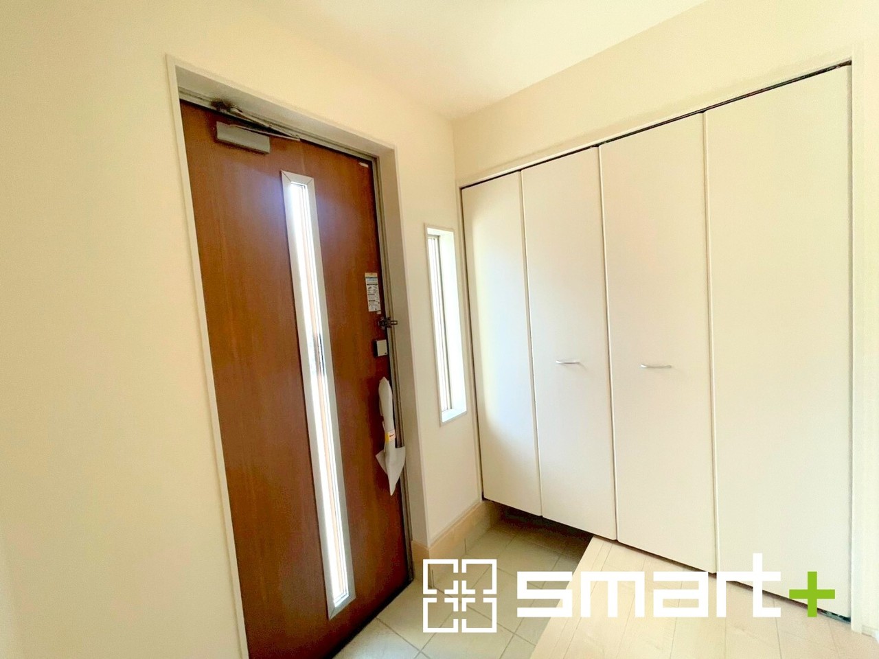 ~穏やかな陽が入る玄関~ ・窓に加えて玄関ドアのガラス部分からも穏やかな陽が入り、明るい玄関になります。 ・備え付けのシューズボックスはたっぷりしまえて玄関がスッキリ片付きますね。