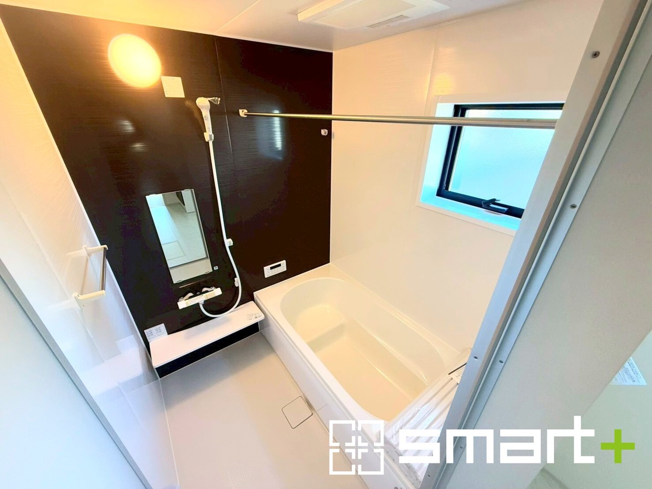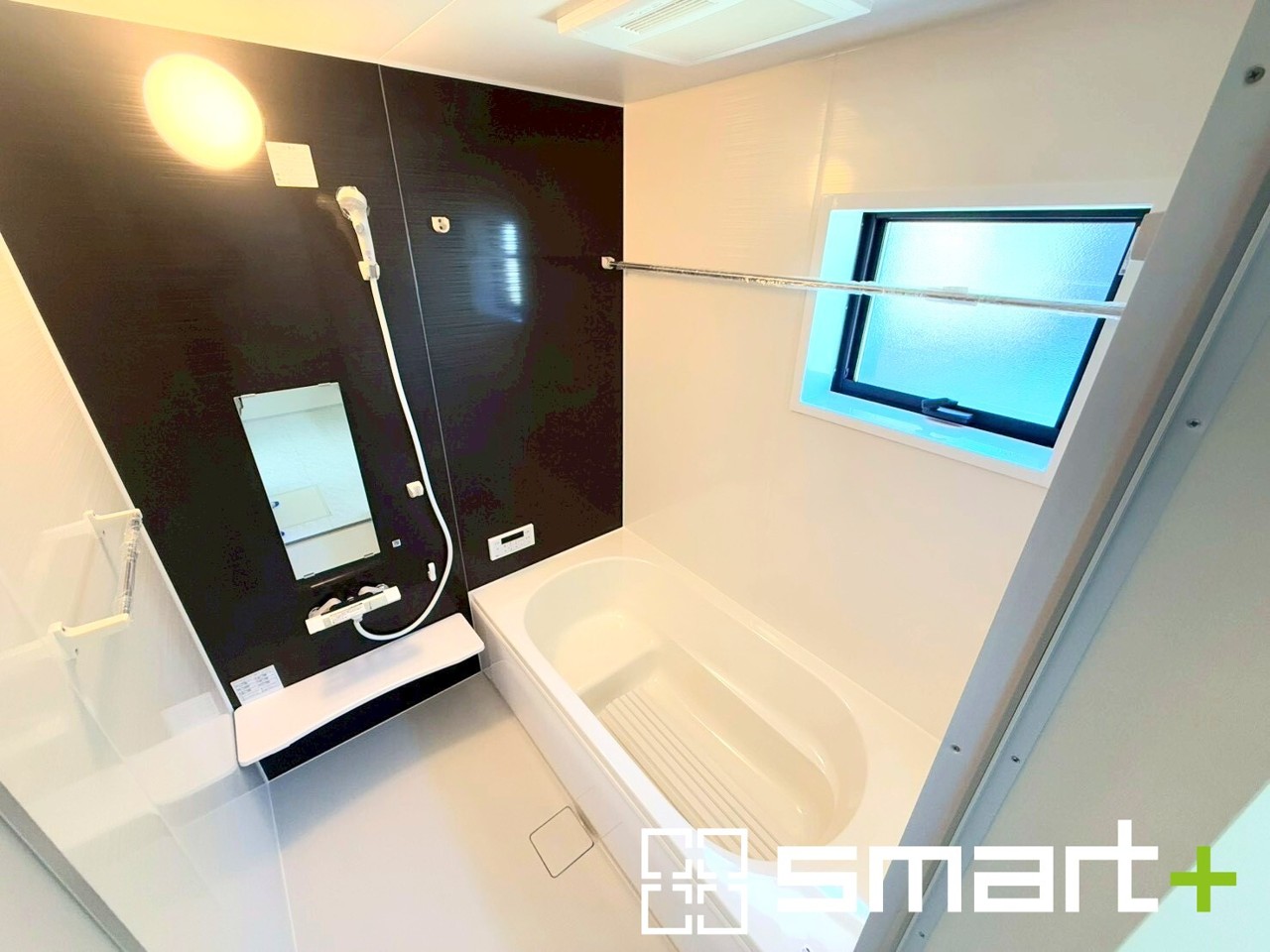 1号棟 ~浴室乾燥機付きの浴室~ ・浴室には乾燥機が付いているので雨の日でも洗濯物を干すことが可能です。 ・水はけの良い床材など機能面も充実。マイクロバルなどオプションもご相談くださいませ。